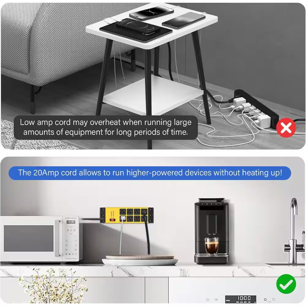 Magnetic Power Strip Surge Protector 20Amp, 12 Gauge Extension-Outlets Wall Moun