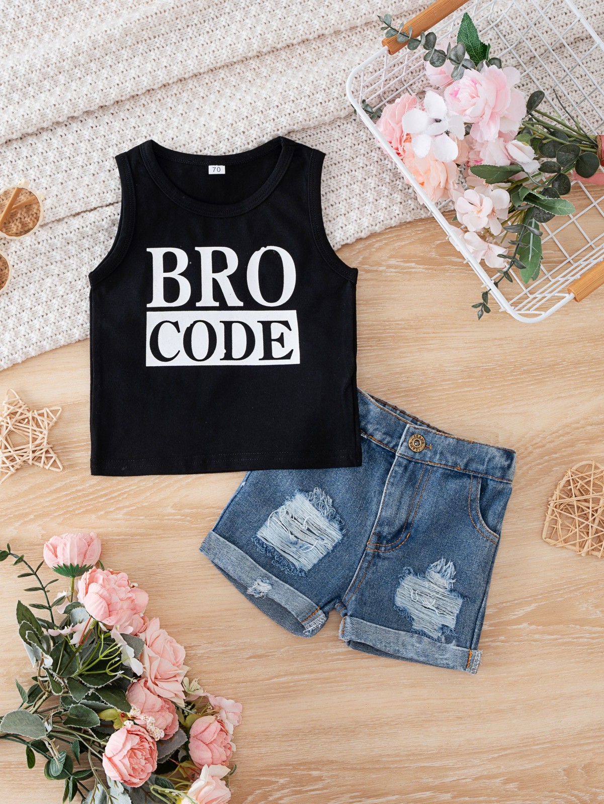 Toddler Baby Boys Sleeveless Tank Tops Demin Ripped Shorts 2PCS Outfits Set
