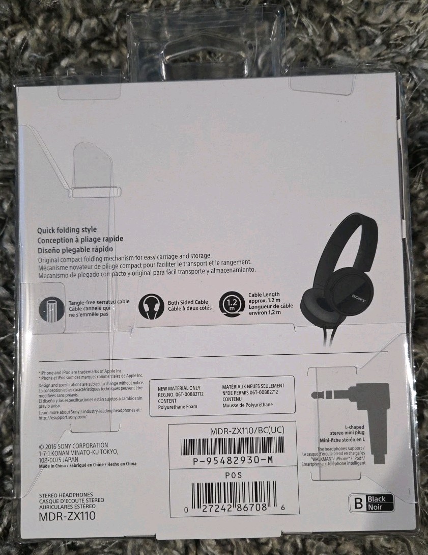 Sony MDRZX110/BLK ZX Series Stereo Headphones, Black New Factory Sealed
