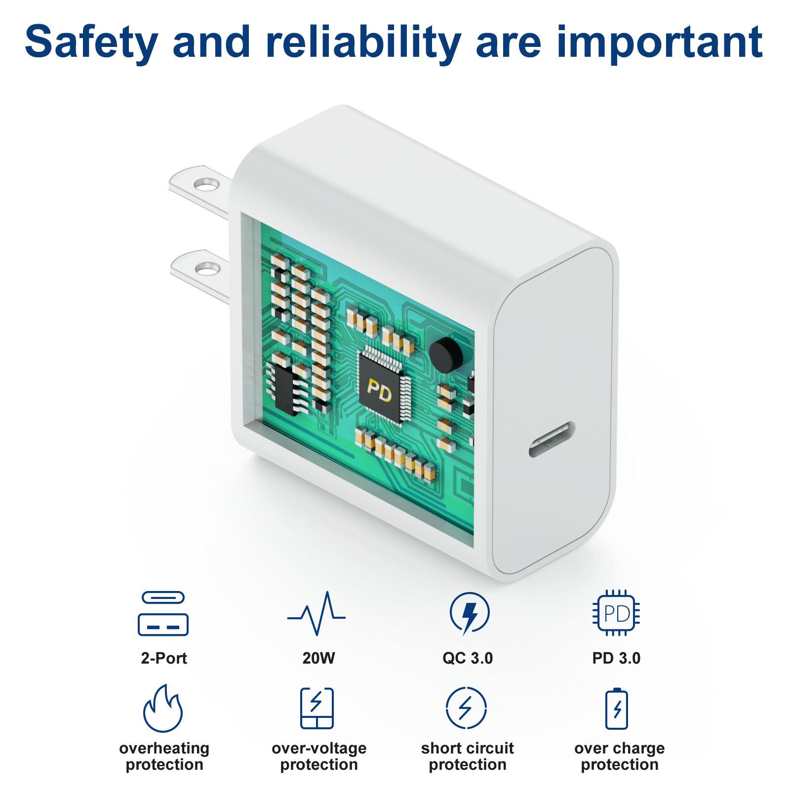 как выглядит 3x Fast Charger Block 20W USB C Wall Charger PD 3.0, Type C Power Adapter фото