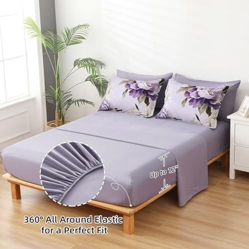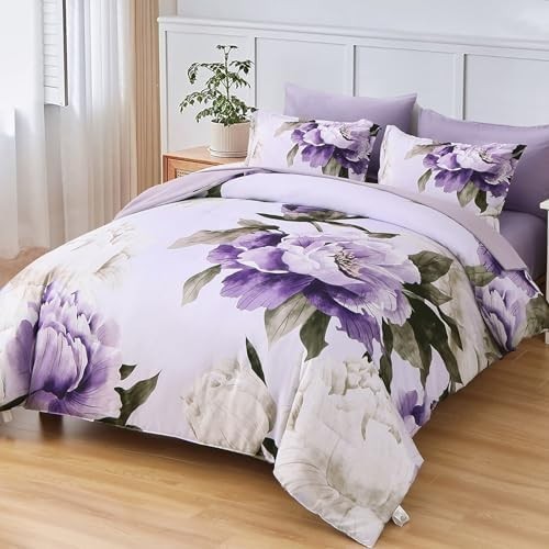 Dobuyly Purple Queen Comforter Set 7 Piece Bed in a Bag Queen, Purple Floral ...