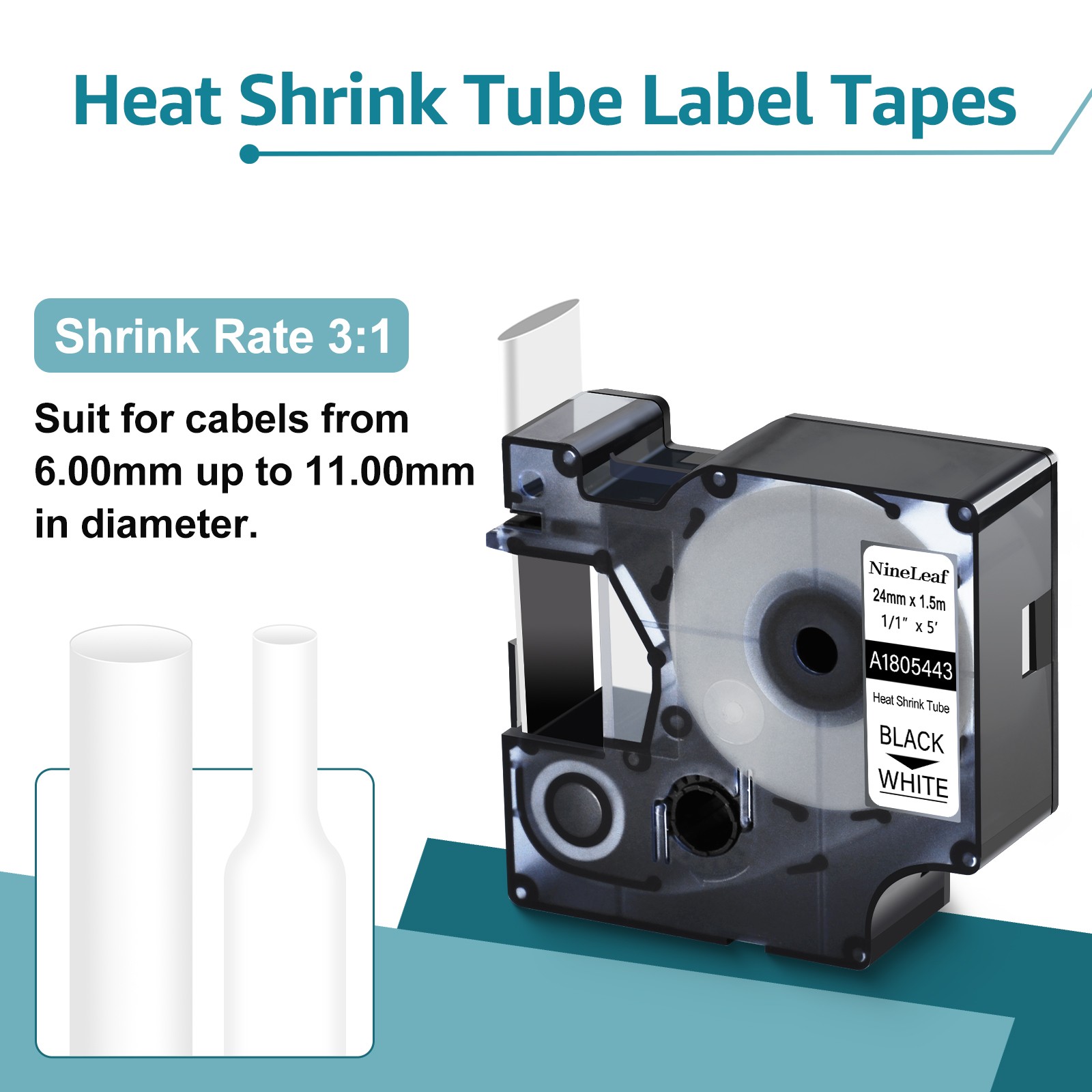 2PK 1805443 IND Heat-Shrink Tube For DYMO Rhino 6000 Industry Label Tape 1 x5'
