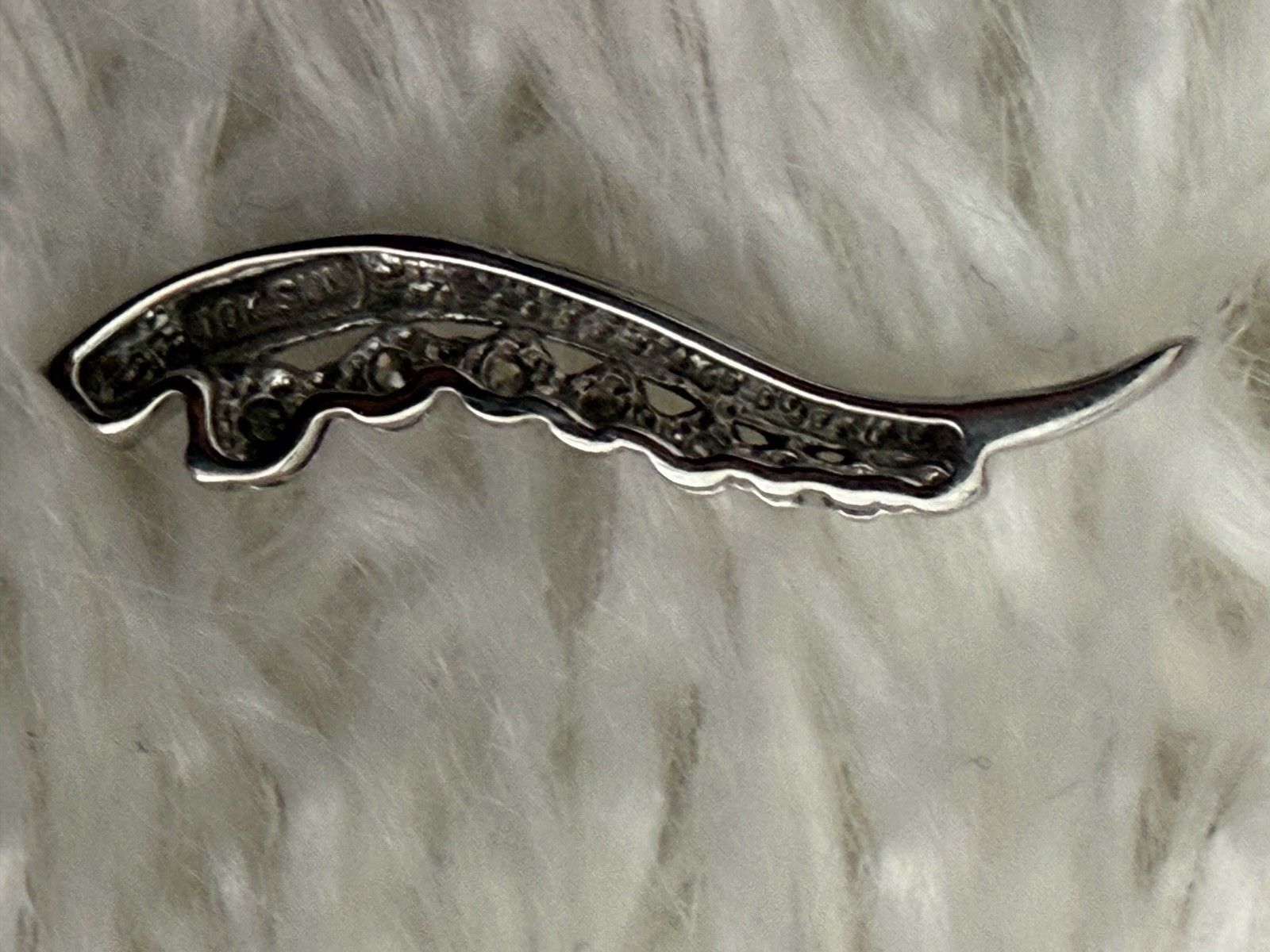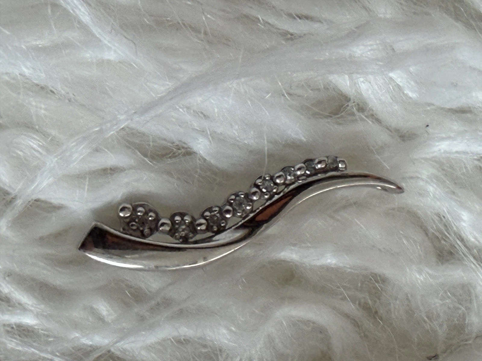 Vintage 1 curved bar 10k White Gold pendant necklace with round-cut diamonds