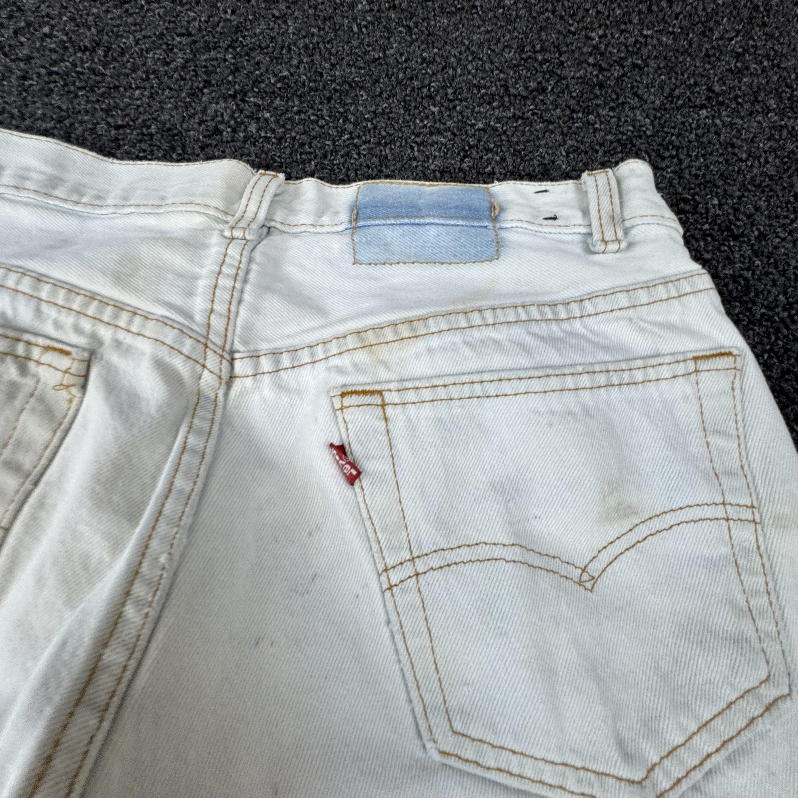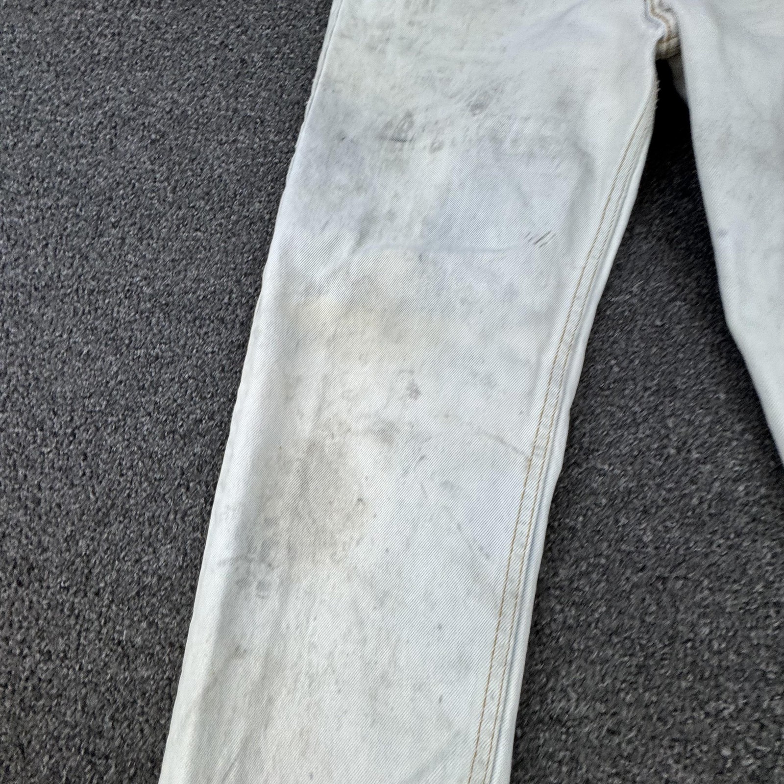 как выглядит Vintage Levis 501 Jeans Mens 33x34 White Denim Made USA Distressed 80s Stained фото