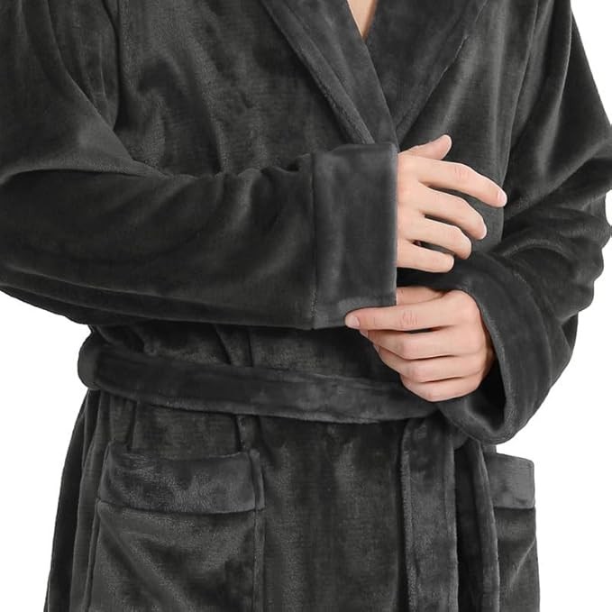 как выглядит Luxury Mens Robe with Hood, Ultra Cozy Fleece Bathrobe for Men, Plush Hooded ... фото