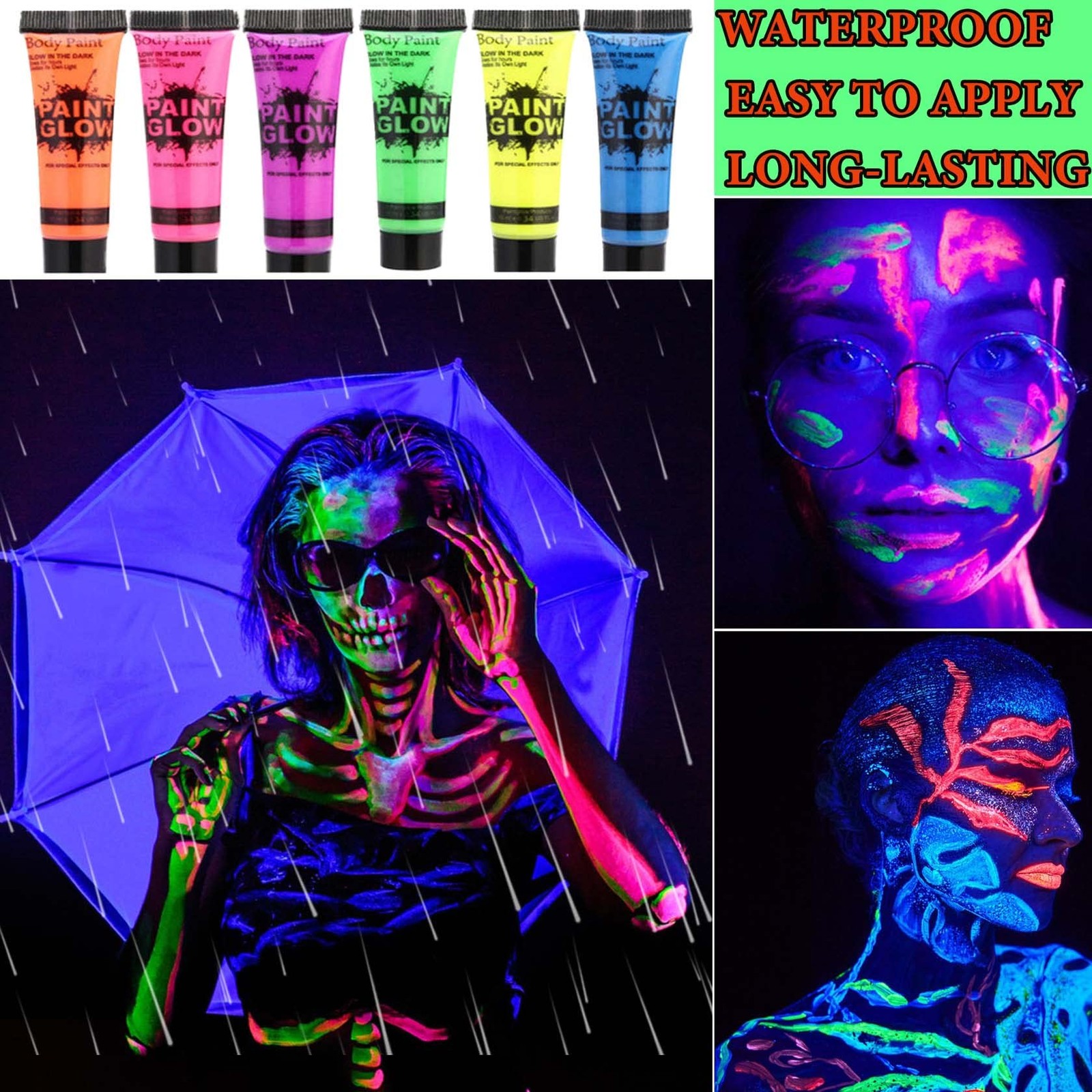 как выглядит 6 Pcs Glow in the Dark Face Body Paint,Blacklight Neon Face Body Paints,Easi... фото