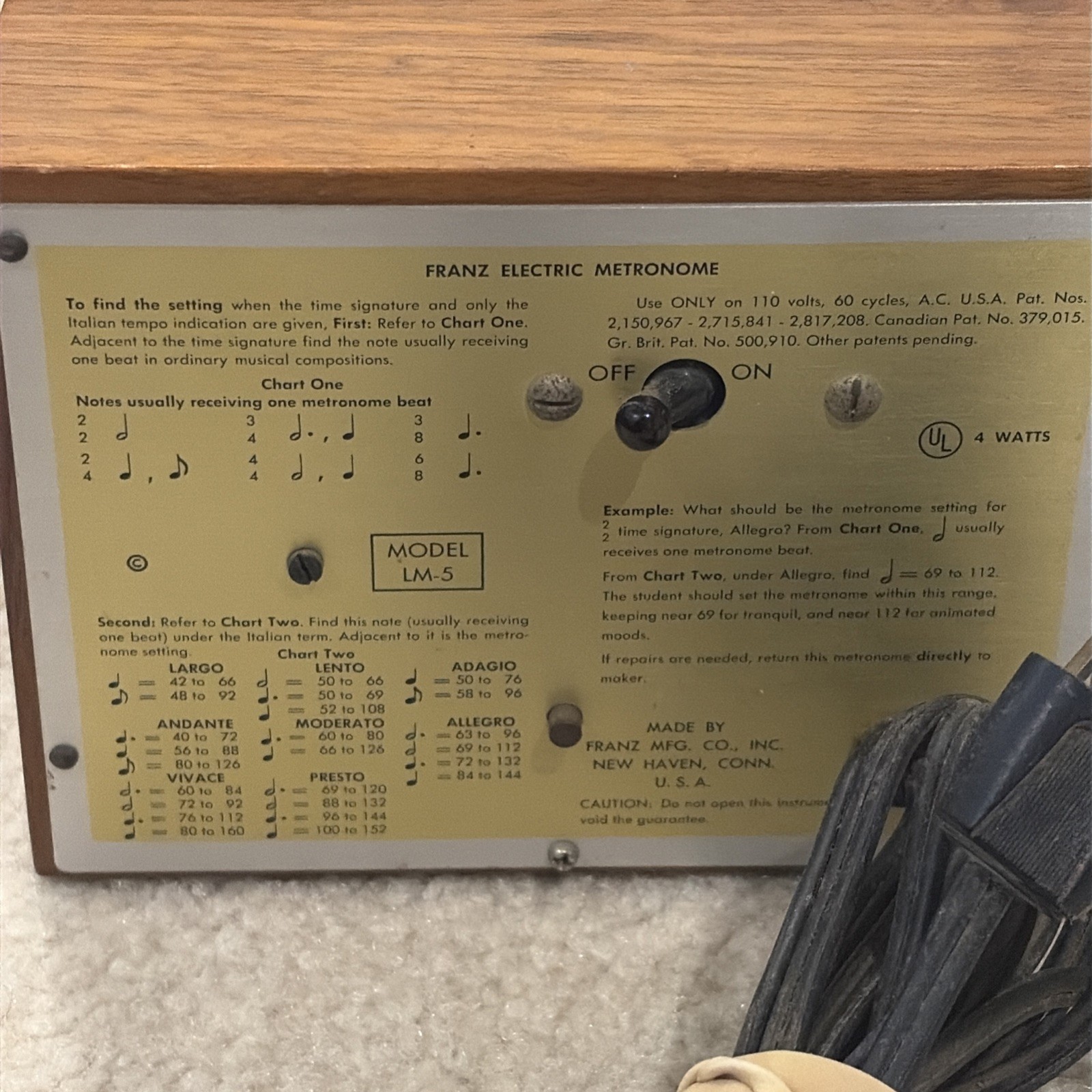 Vintage Franz Electric Metronome Model LM-5 Made From Mahogany Tested Works