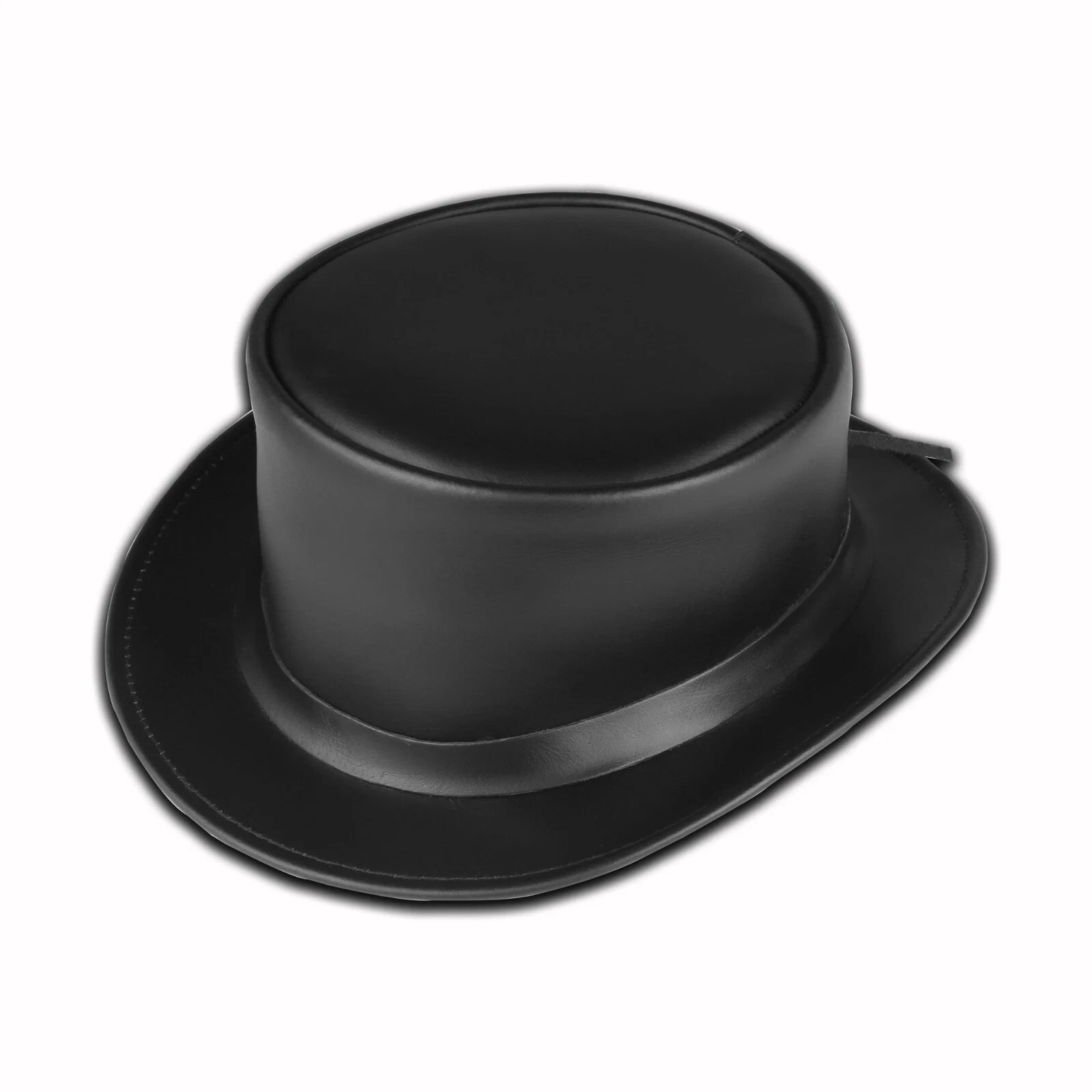 Fashion Shapeable Black Genuine Leather Fashion Top Hat