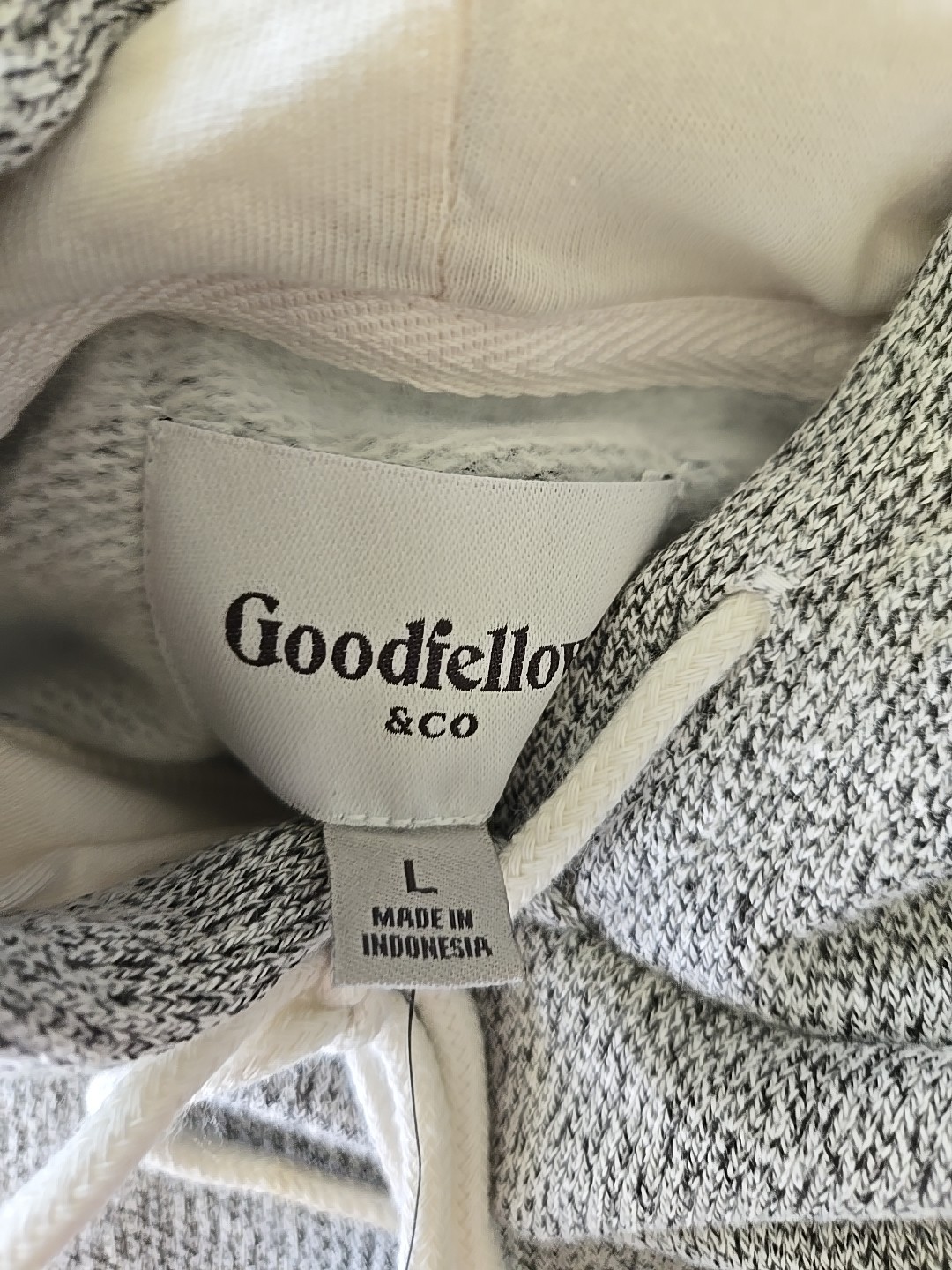 как выглядит Goodfellow Co. Mens Textured Fleece Hooded Sweatshirt LARGE Gray Pockets фото