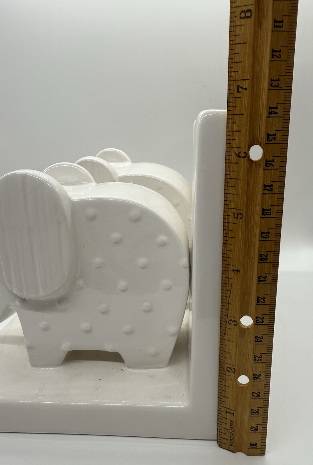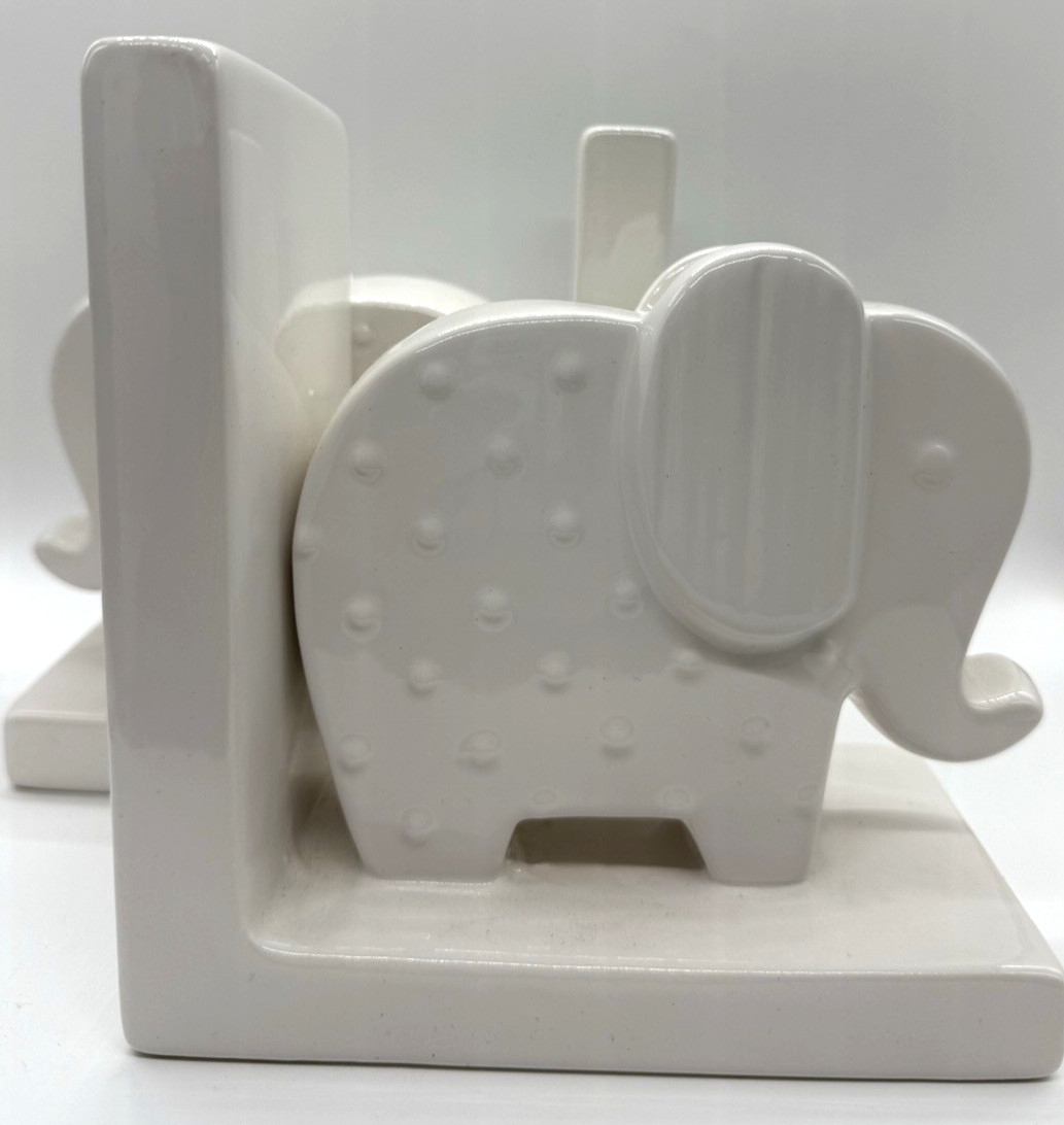 Hobby Lobby White Ceramic Spotted Elephant Bookend Set Children's Room Deco