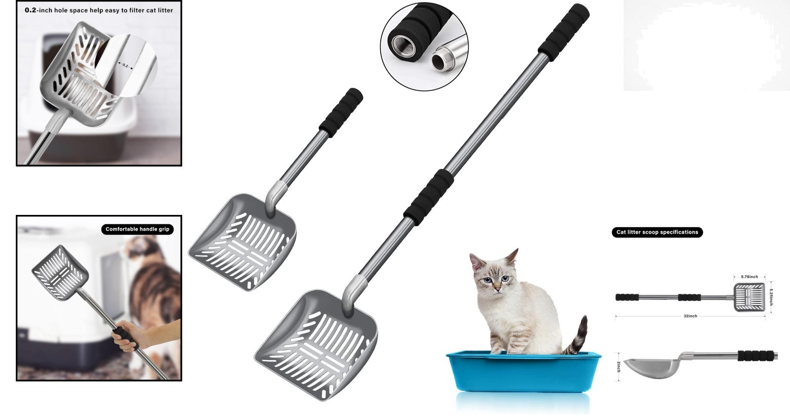 32-Inch Long Handle Heavy-Duty Cat Litter Scoop Effortless Cleaning Solution