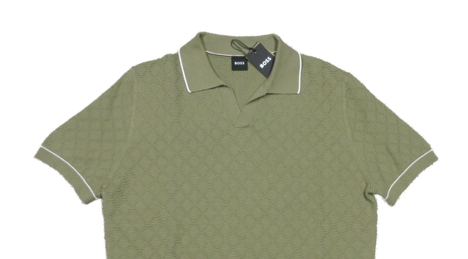 Boss Hugo Boss Men's Green Irenzo Textured Pattern Cotton Polo Sweater S