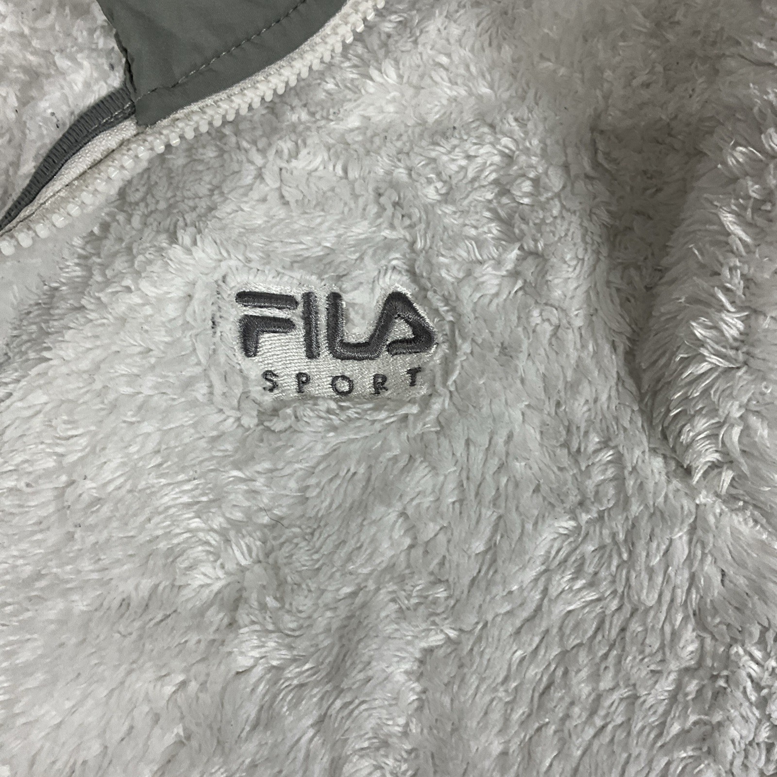 FILA Fluffy Womens Jacket Sport Faux Fur Full Zip White Size S Soft