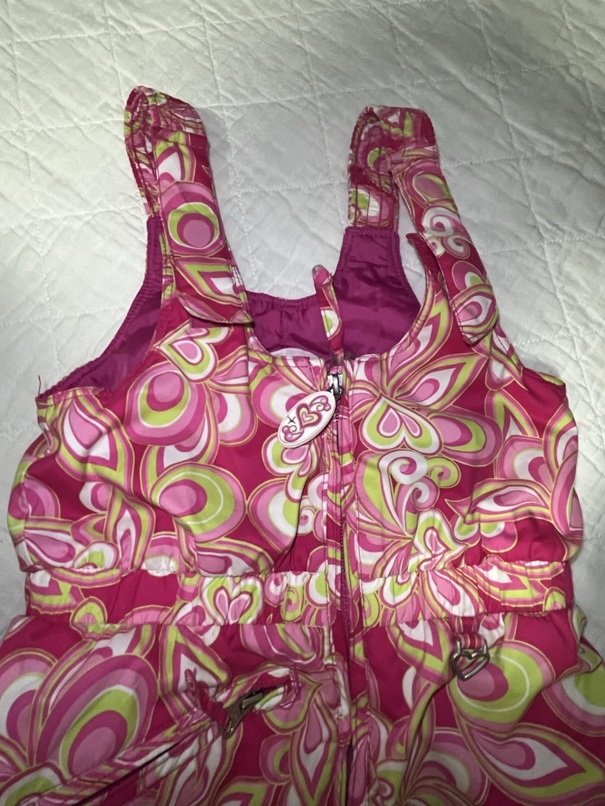 как выглядит Obermeyer Kids Ski Snowsuit Pink and green design Size 4 Winter Snowsuit фото