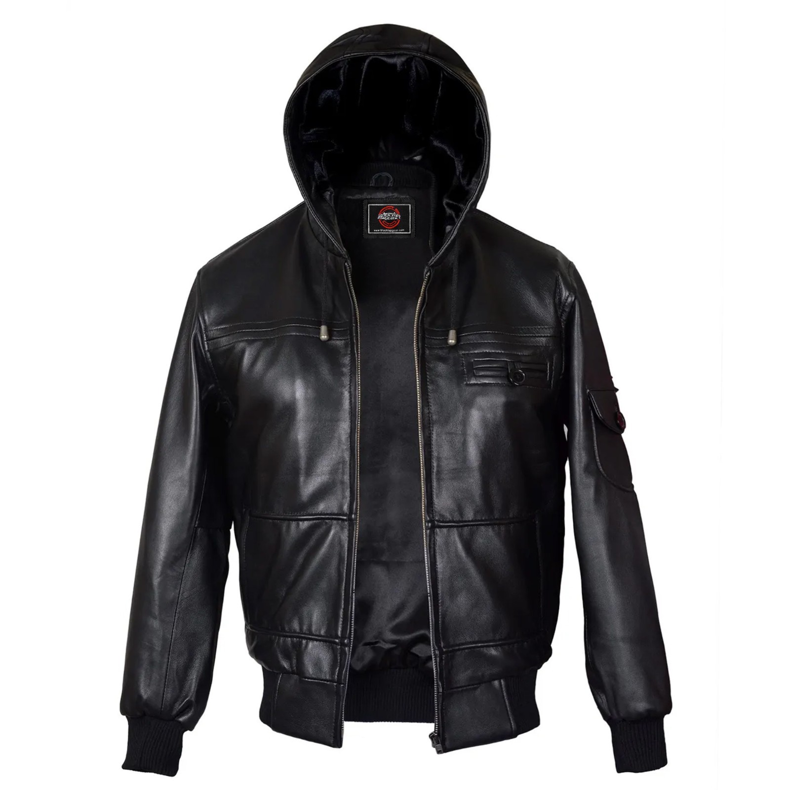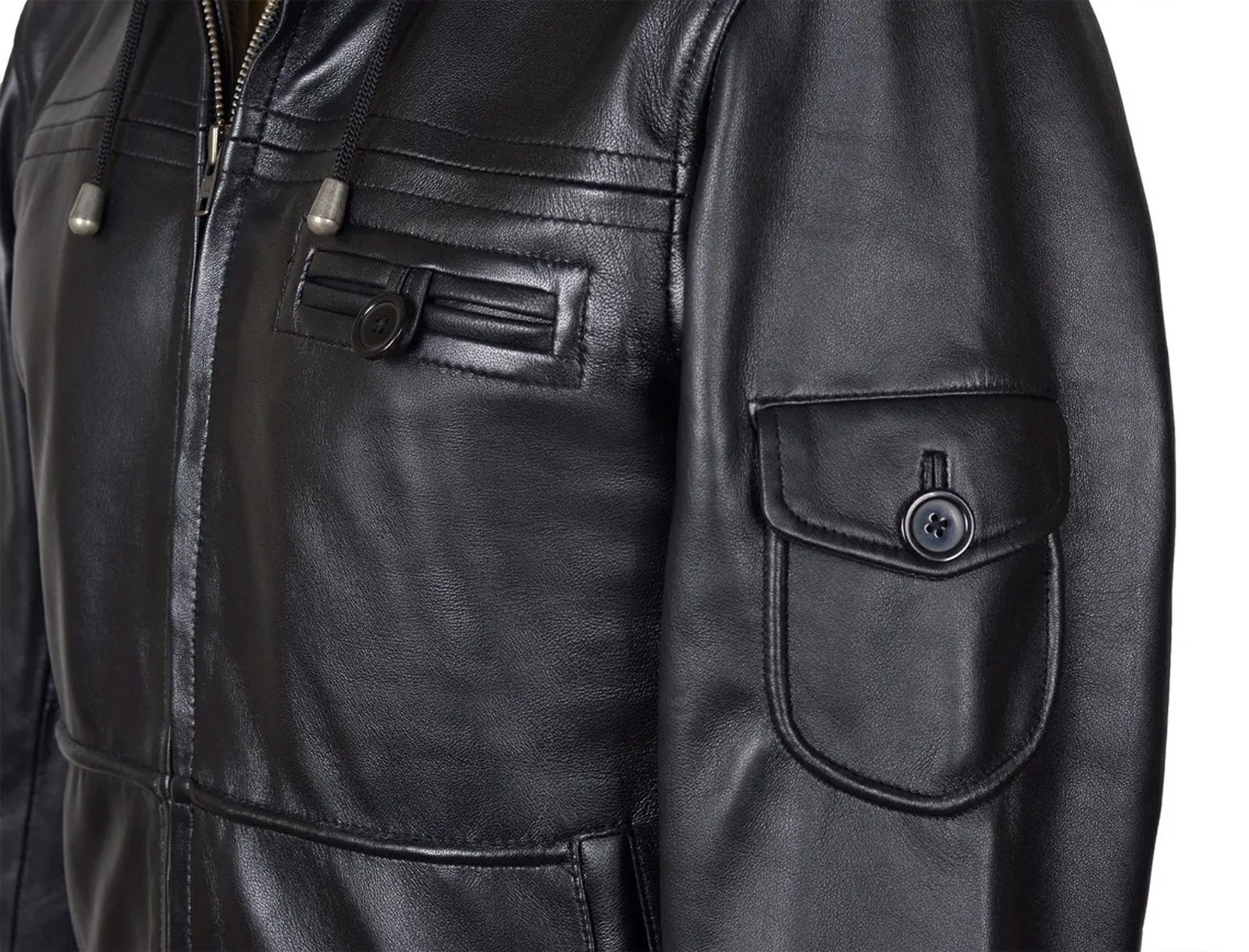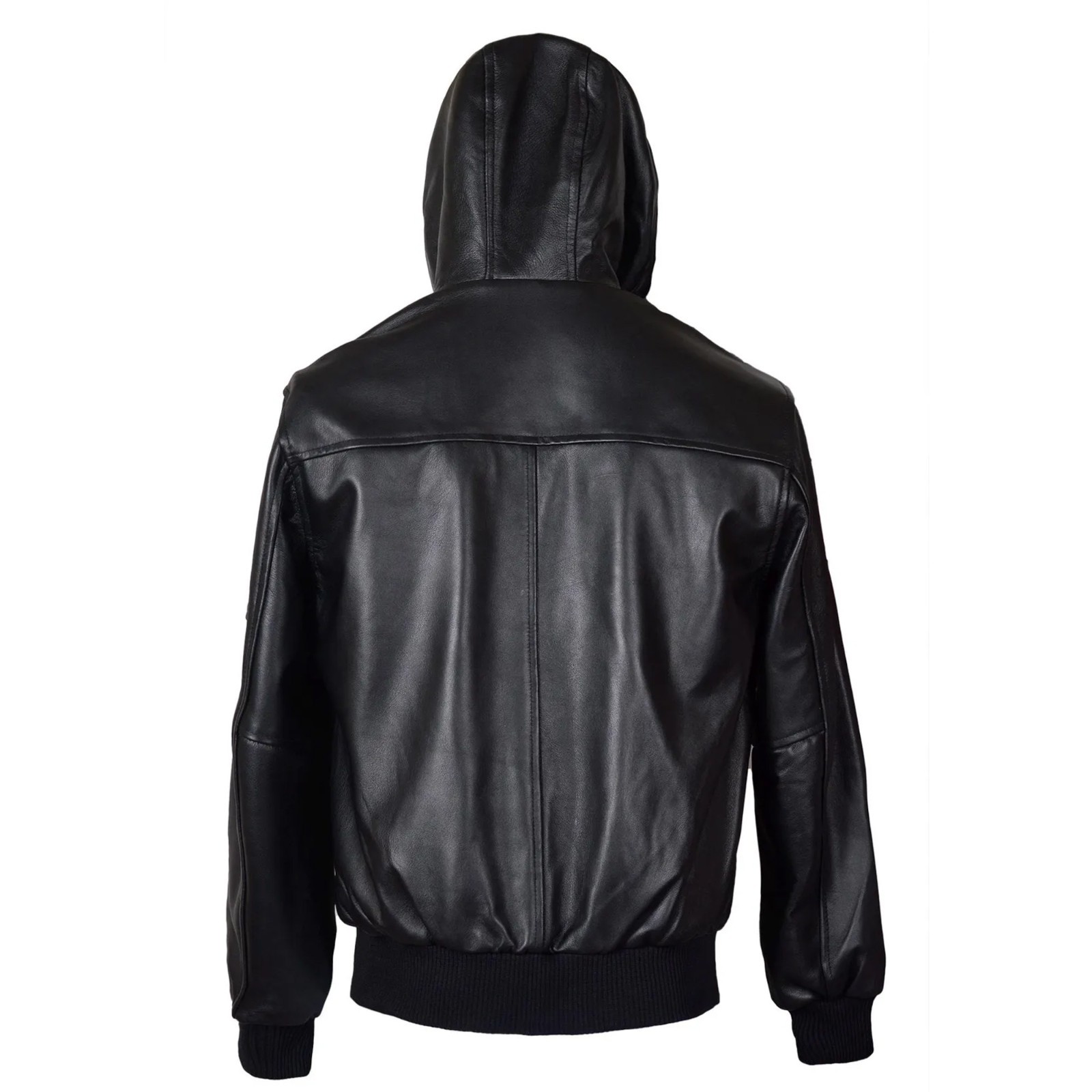 Men's Black Premium Leather Hoodie Handmade Genuine Lambskin Leather Jacket