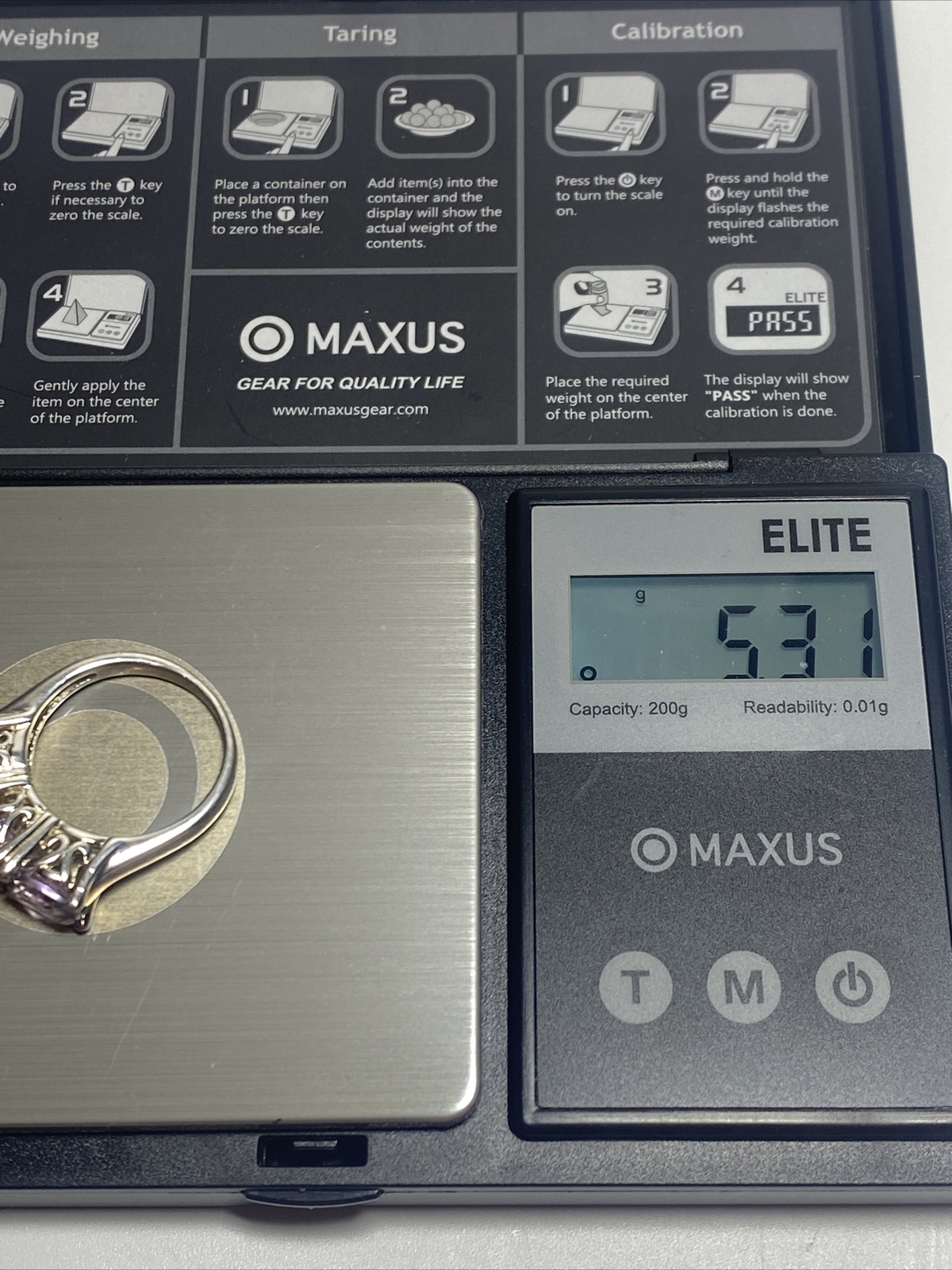 Amethyst 925 Sterling Silver Women Three Stone Wedding Ring Size 7.5