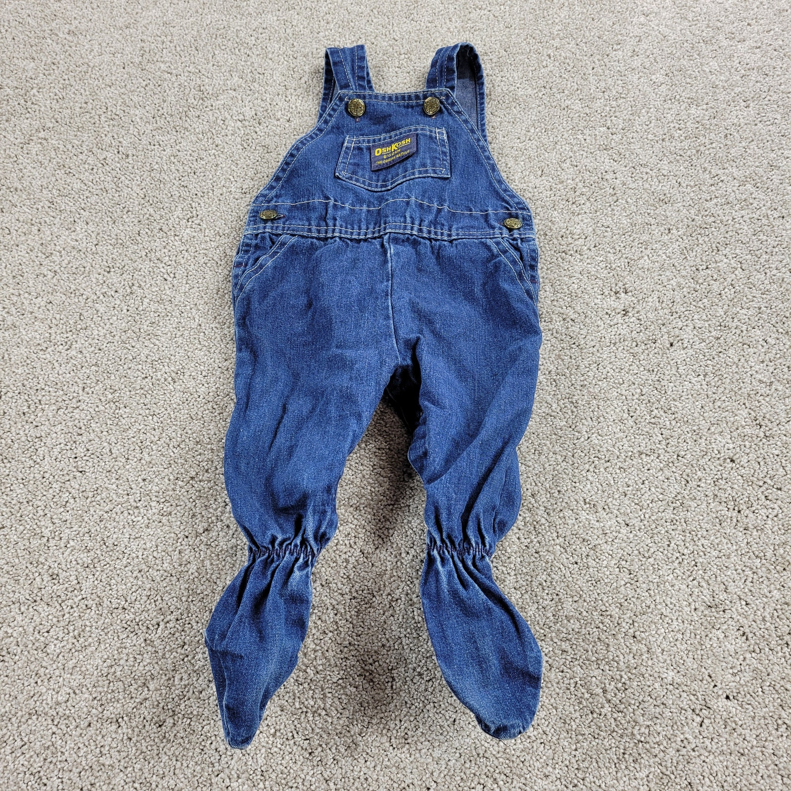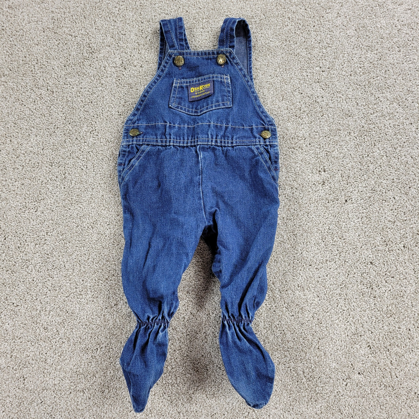 Vintage Osh Kosh B'Gosh Footed Bib Overalls 6/9 Mos Blue Denim Leg Snaps USA
