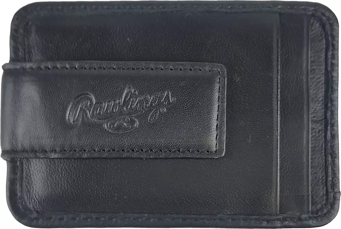 Rawlings Baseball Stitch Leather Front Pocket Magnetic Wallet RS10005 RFID - Bla