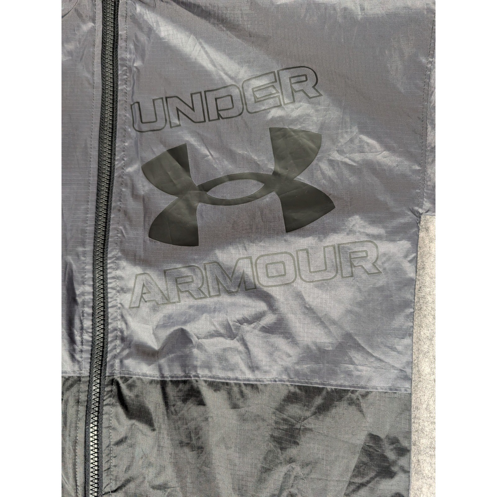 как выглядит Kids Under Armour ColdGear Hooded Windbreaker Jacket YLG Grey Black Logo фото