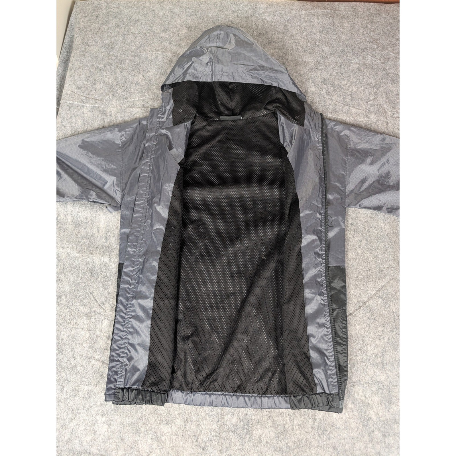Kids Under Armour ColdGear Hooded Windbreaker Jacket YLG Grey Black Logo