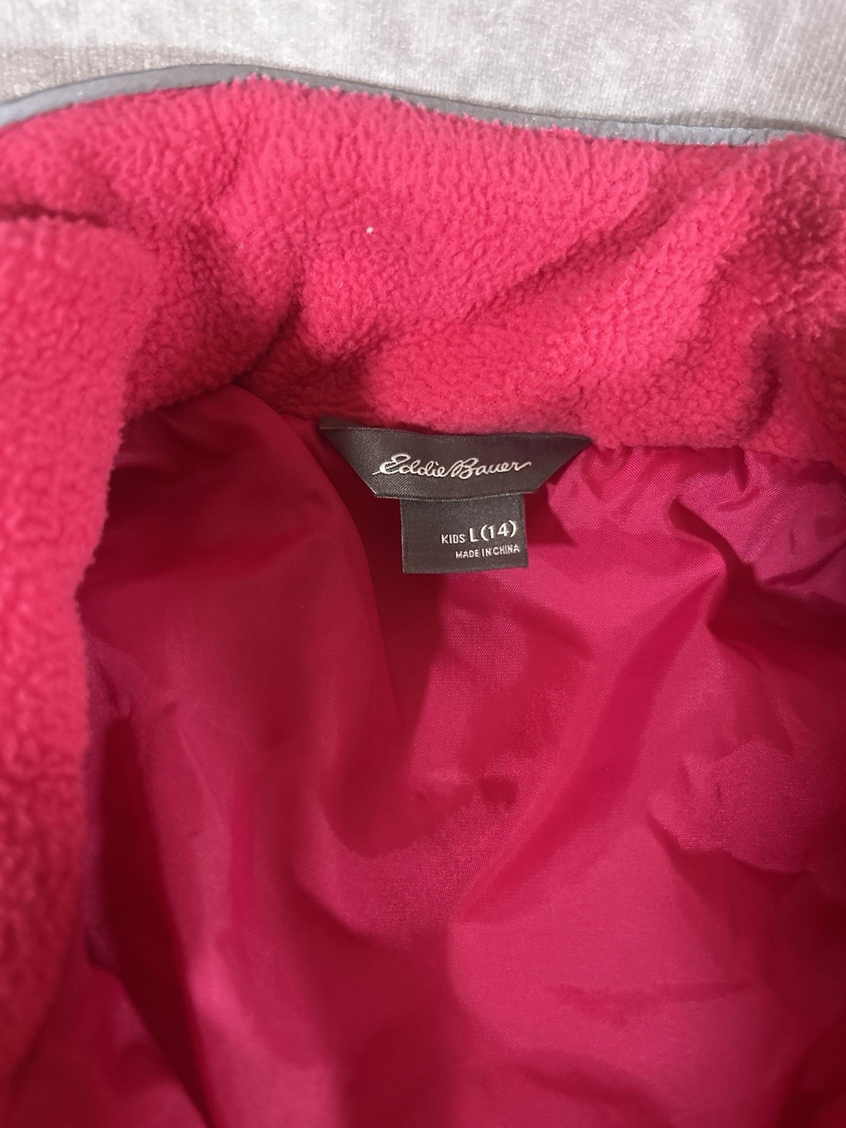 как выглядит Eddie Bauer Kids Puffer Down Fill Size Large 14 Full Zip Jacket Pink. фото