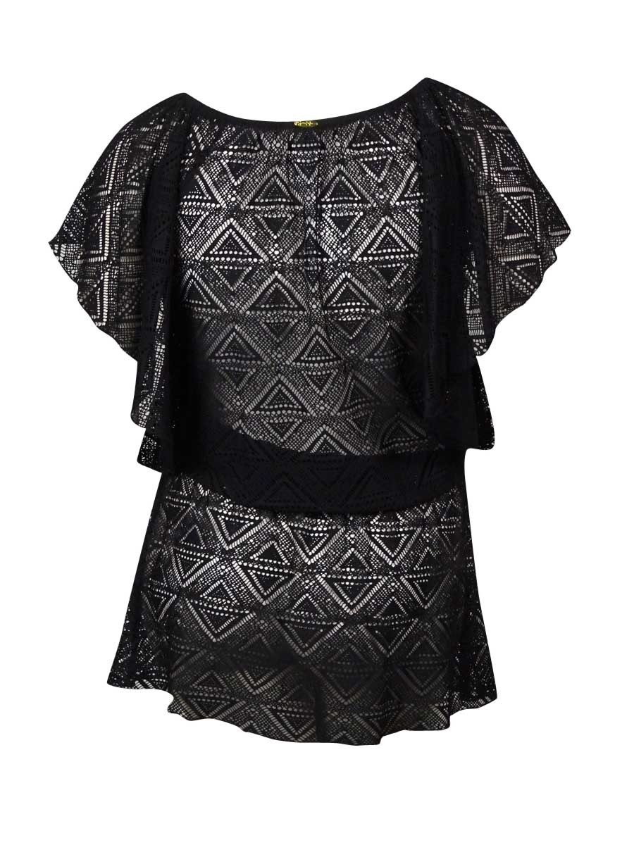 Jessica Simpson Women's Crochet Flutter Swimsuit Cover M, Black