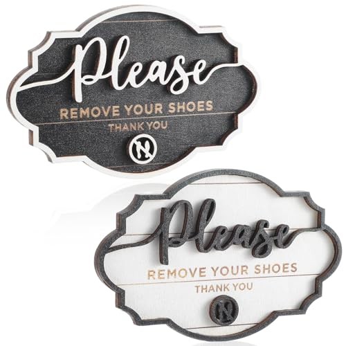 2 Pack Please Remove Your Shoes Sign With Adhesive Pads - Wooden Remove Shoes