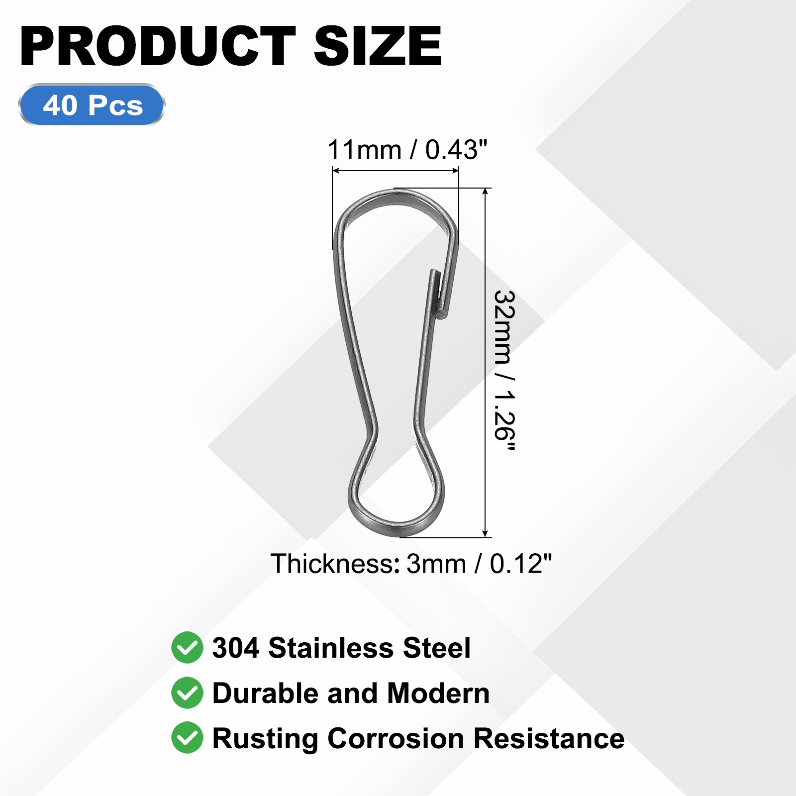 как выглядит Hooks for lanyard, 40 pcs 304 stainless steel hooks 32x11x3mm, black фото