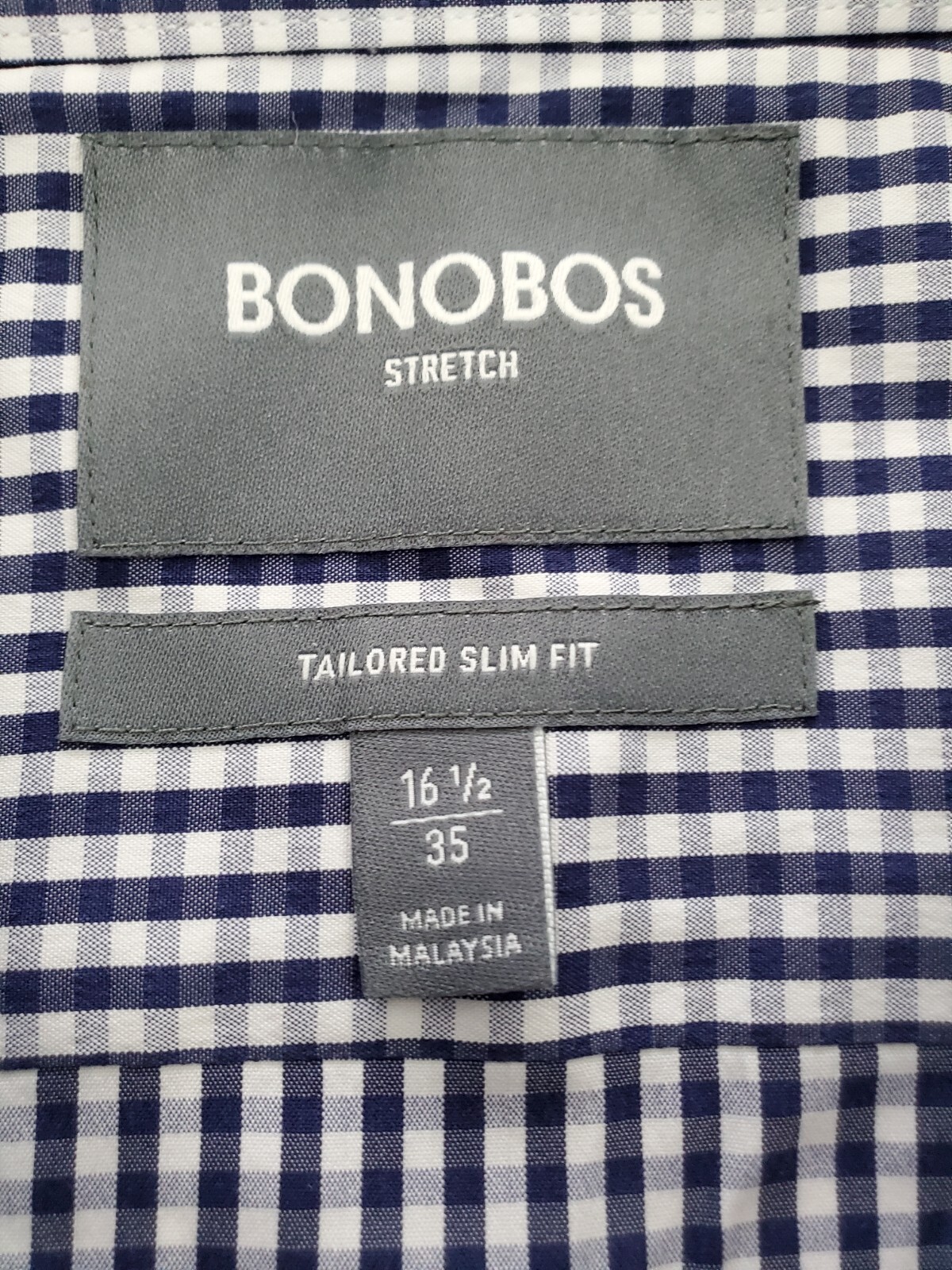 Bonobos Stretch Dress Shirt Mens 16 1/2 35 Tailored Slim Fit Blue Plaid Check