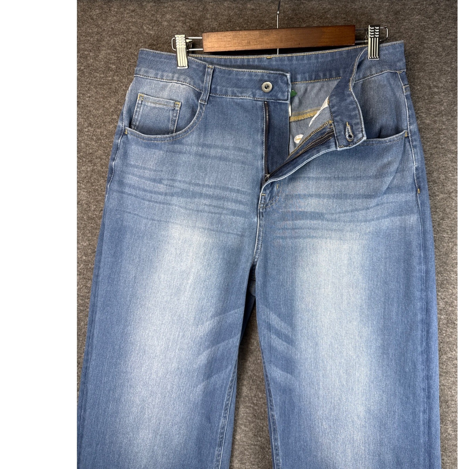 как выглядит Halara Wide Leg Cropped Jeans Cuffed Light Blu Women Size L Cotton Blend Stretch фото