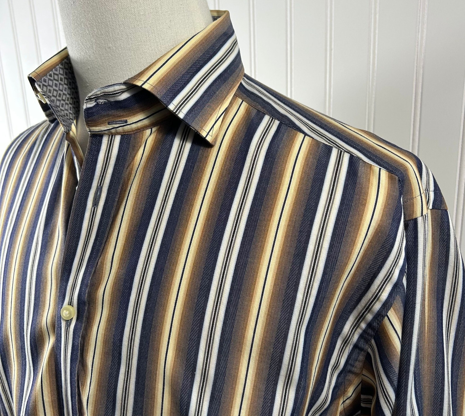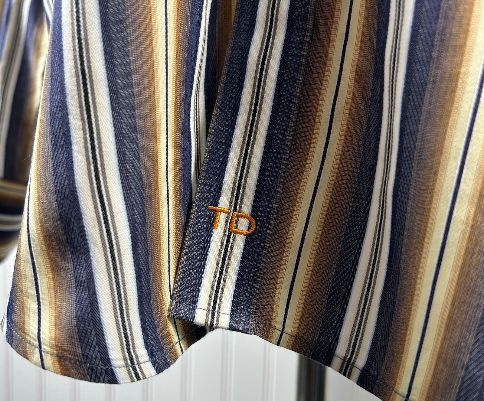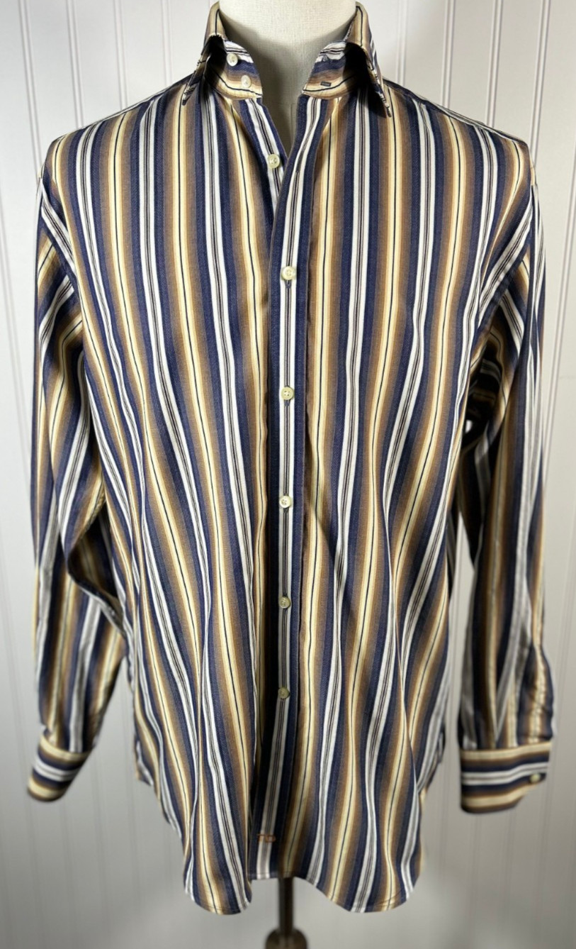 как выглядит THOMAS DEAN Mens Long Sleeve Shirt BLUE Stripe Button Up Cotton Flip Cuff LARGE фото