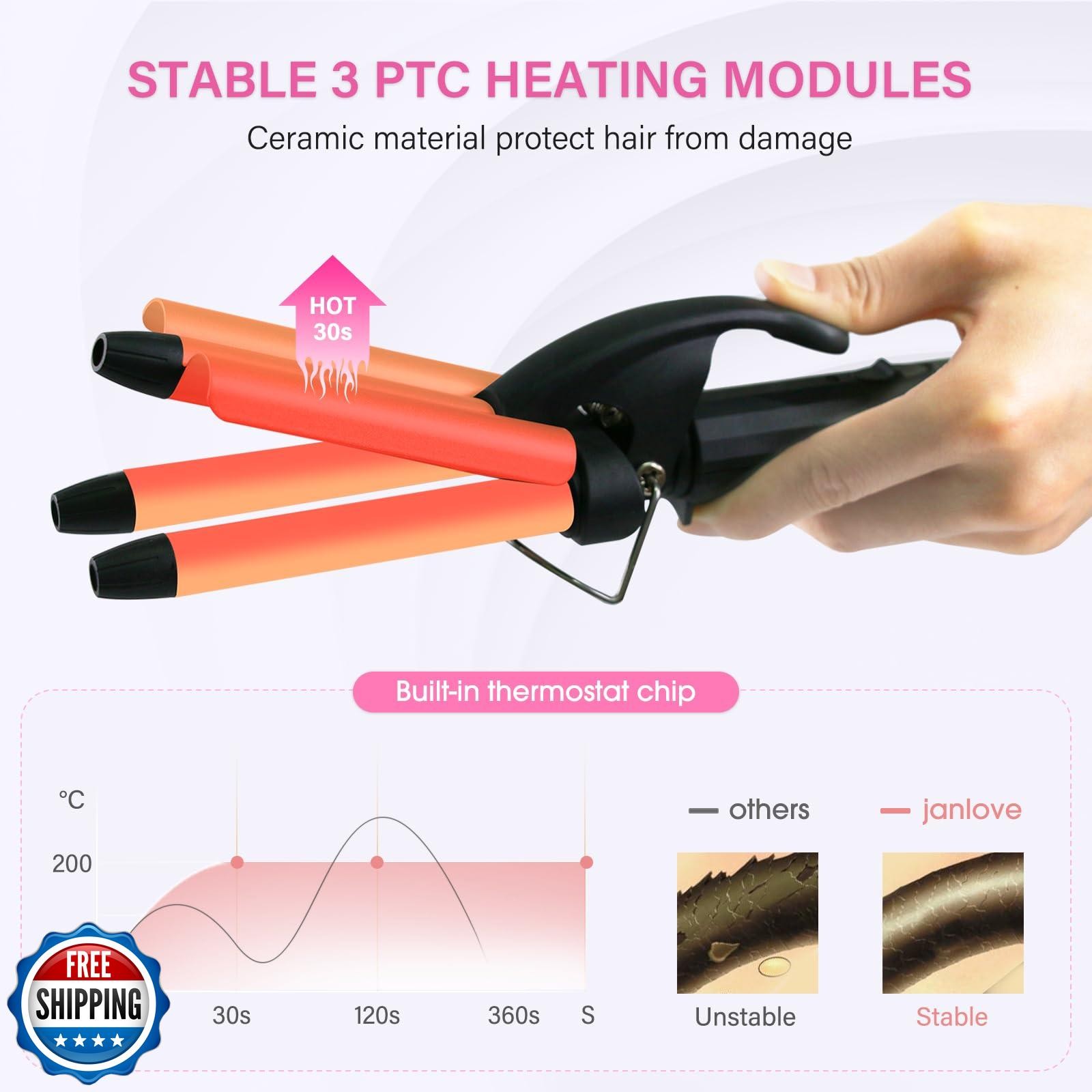Mini Hair Crimper, janelove 1/2 Inch Beach Waves Curling Iron, Ha