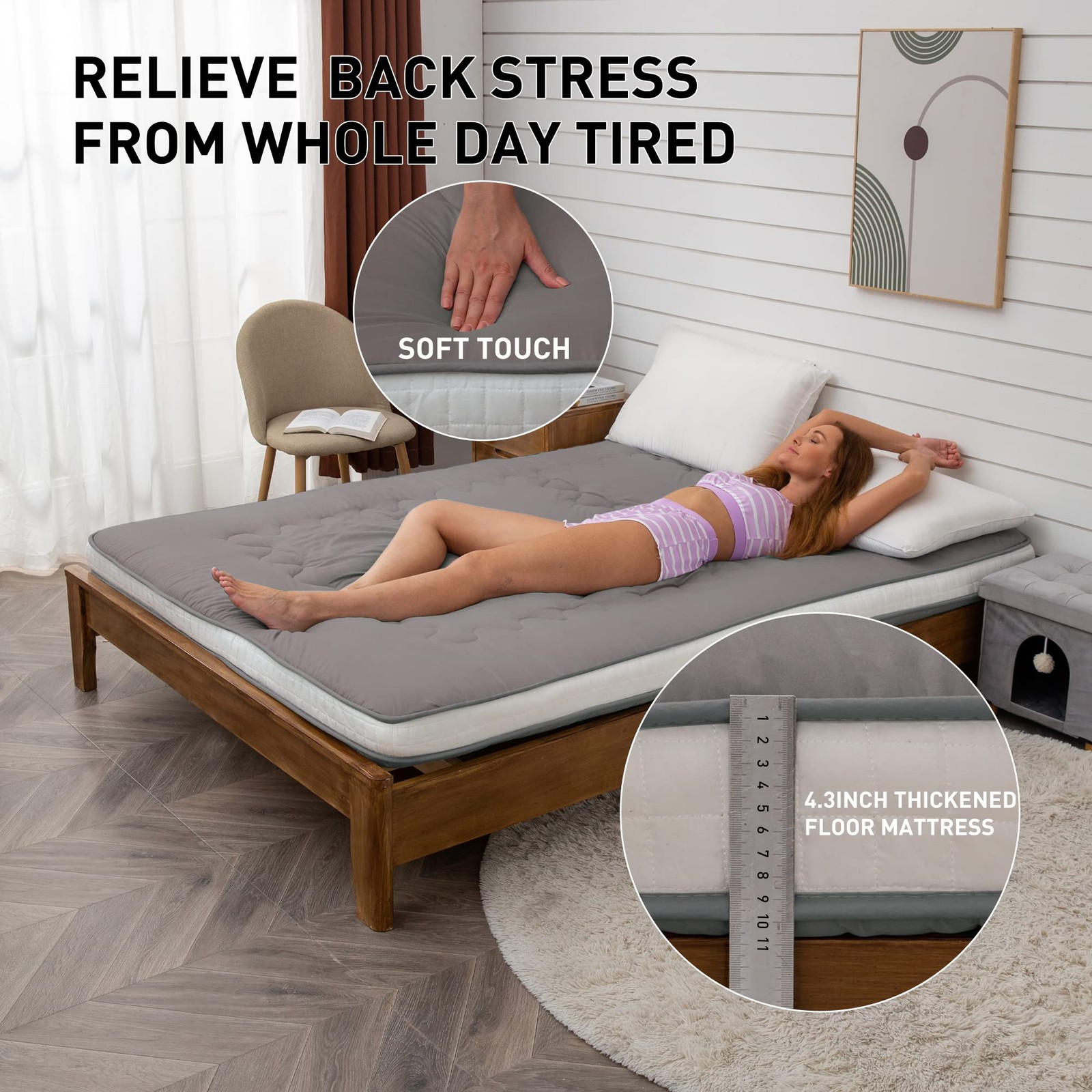 Japanese Floor Futon Mattress Extra Thick Folding Roll Up Bed Topper Mat for ...