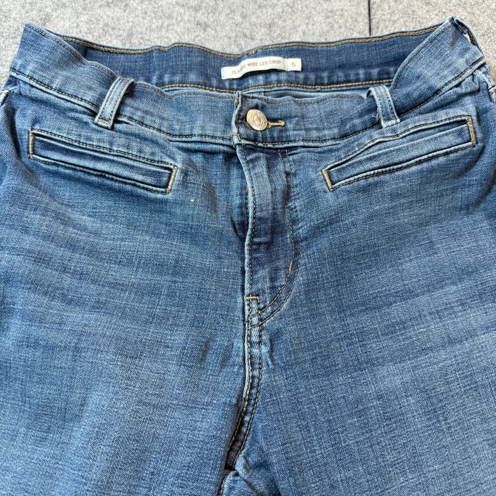как выглядит Levis Classic Wide Leg Cropped Jeans Women 6 Blue Denim Hipster Pockets Zip Fly фото