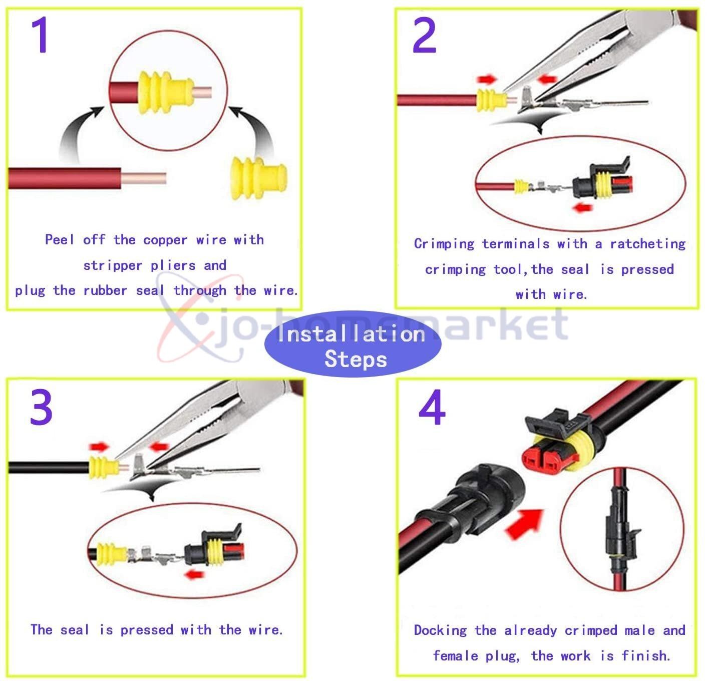352PCS 1-4 Pin Car Automotive Waterproof Electrical Wire Connectors Plug Kit Set