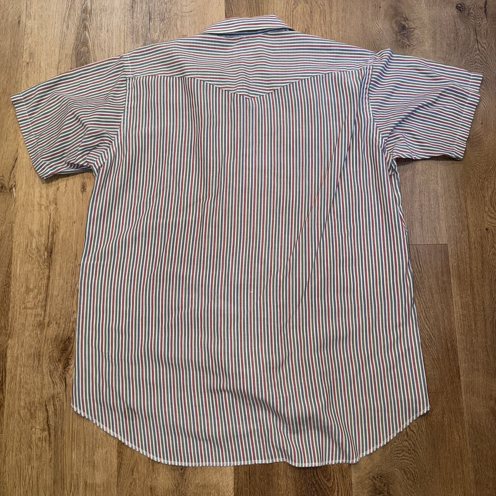 как выглядит Vtg Wrangler Shirt Pearl Snap Western Cowboy Striped X Long Tail Mens 19 3XL фото