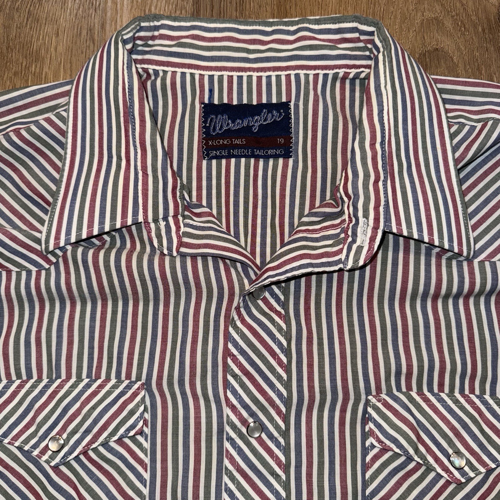 Vtg Wrangler Shirt Pearl Snap Western Cowboy Striped X Long Tail Mens 19 3XL