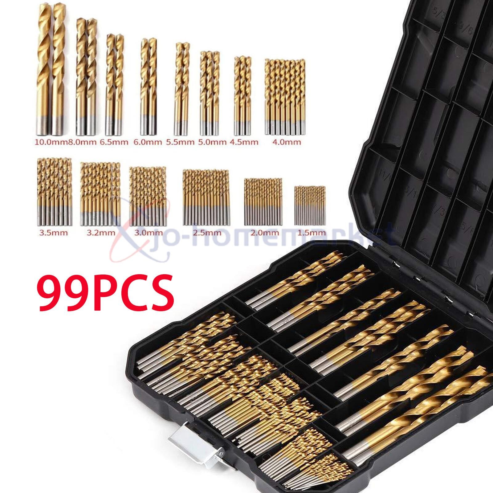 99X Drill Bit Set 1/16-3/8 HSS Titanium Multi Drill Bits Twist Metal Tools US