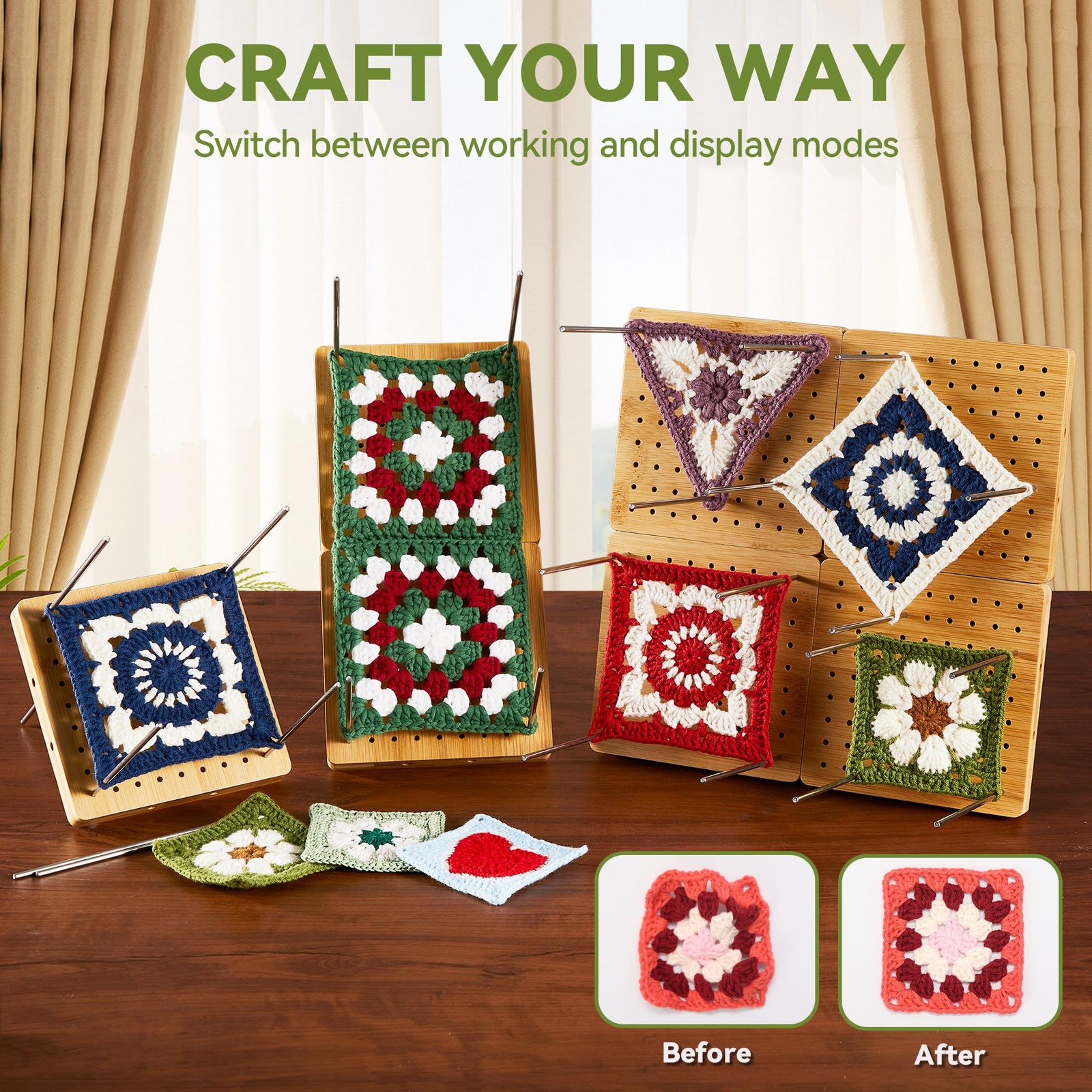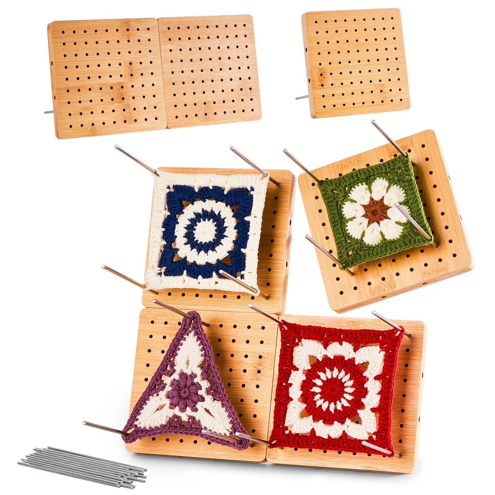 4-Pack 4.7 Crochet Blocking Boards with 25 Steel Pins Pegs, Assembles Bamboo