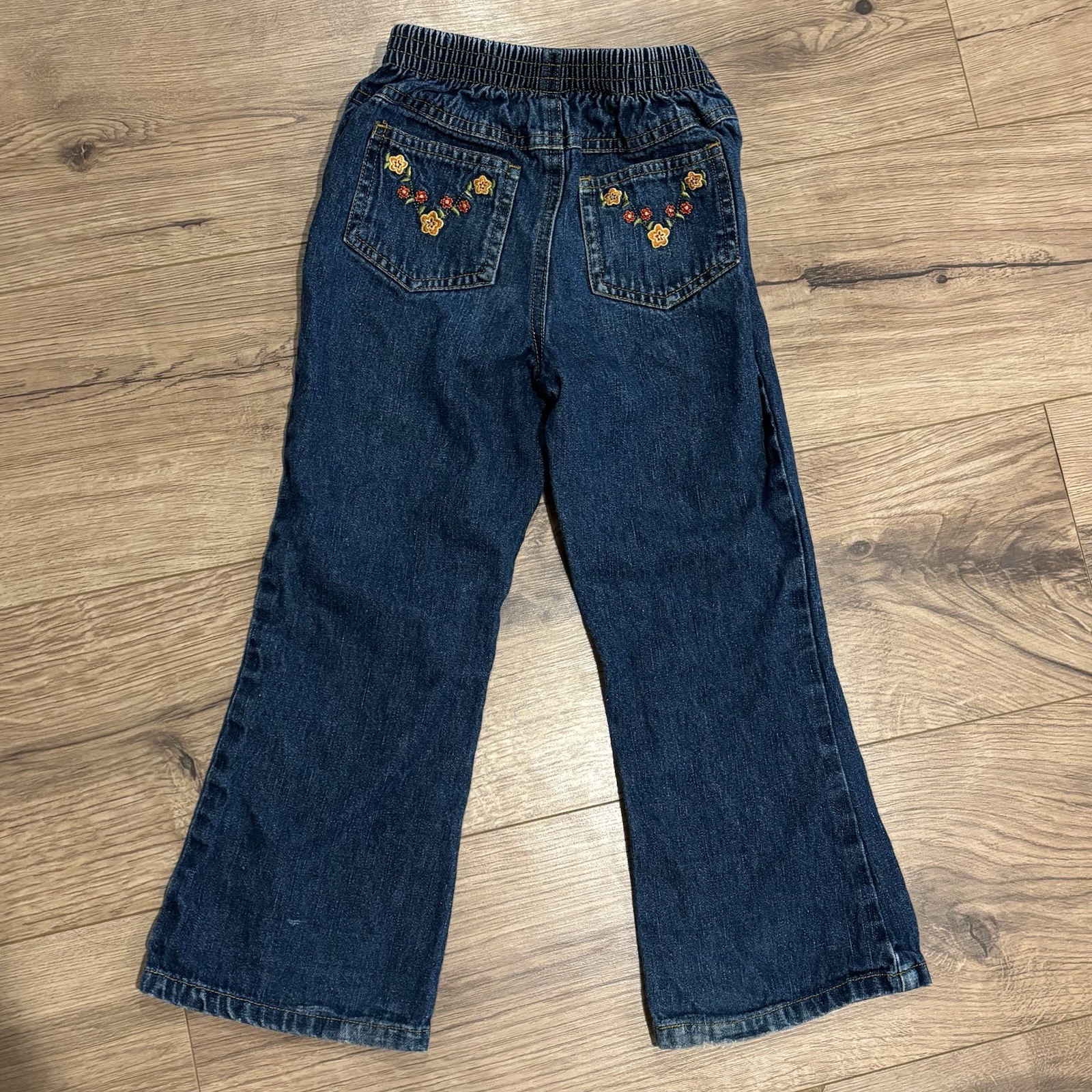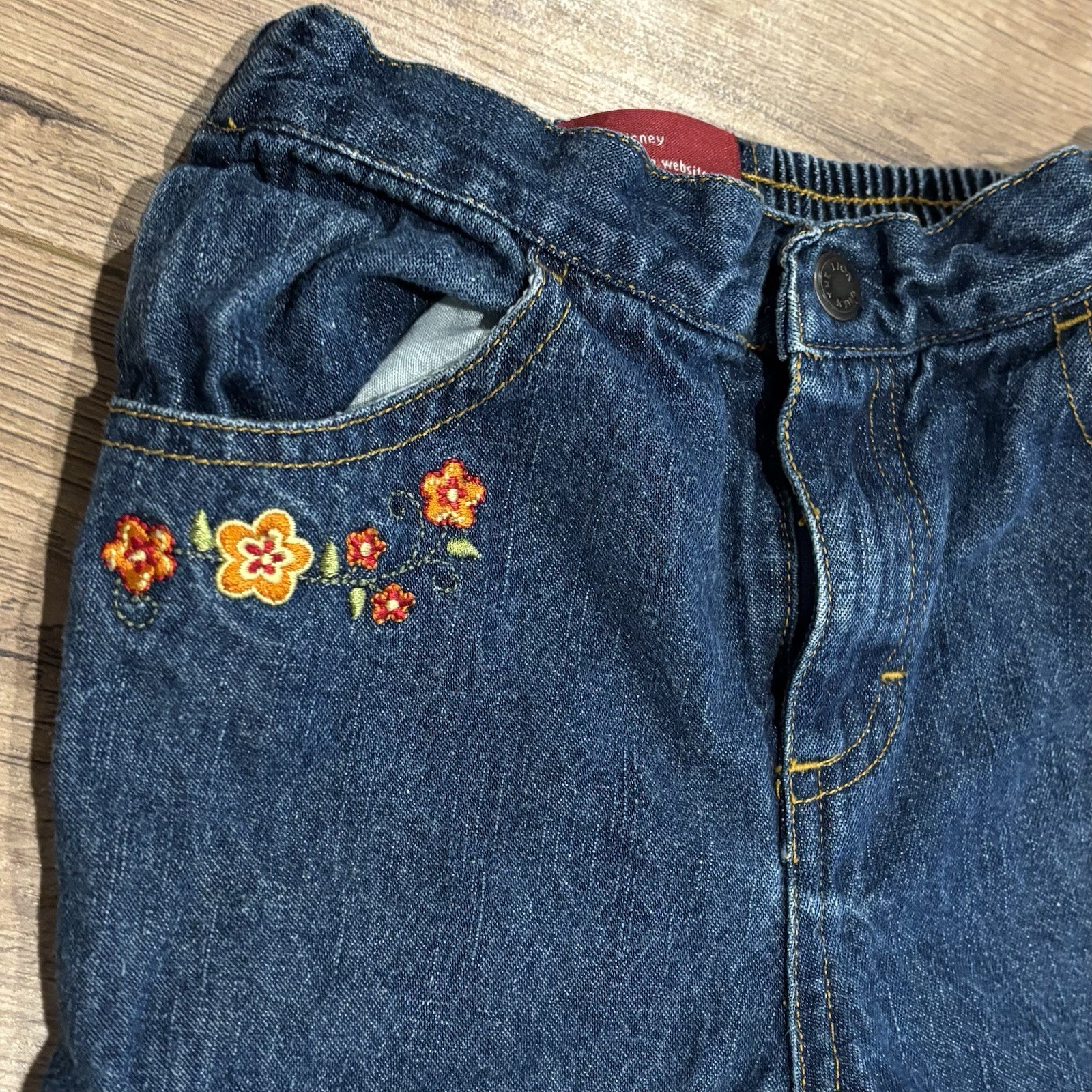 как выглядит Vintage Lion King Jeans Flare Floral Embroidered Blue Denim Girl Size 5T фото