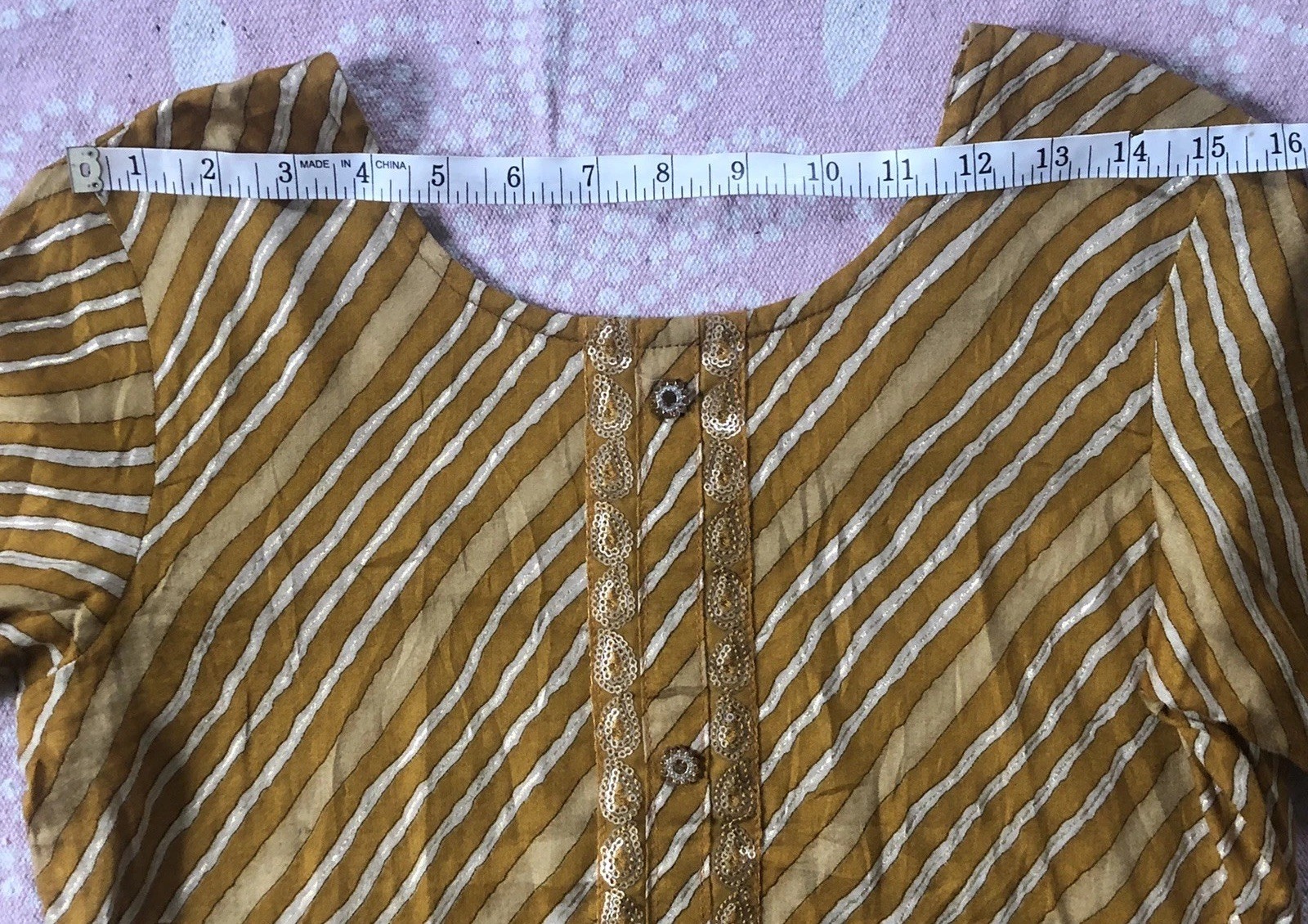 Handmade Womens S 2-pc Kurti Set Mustard Gold Yellow Shimmer Metallic Pocket