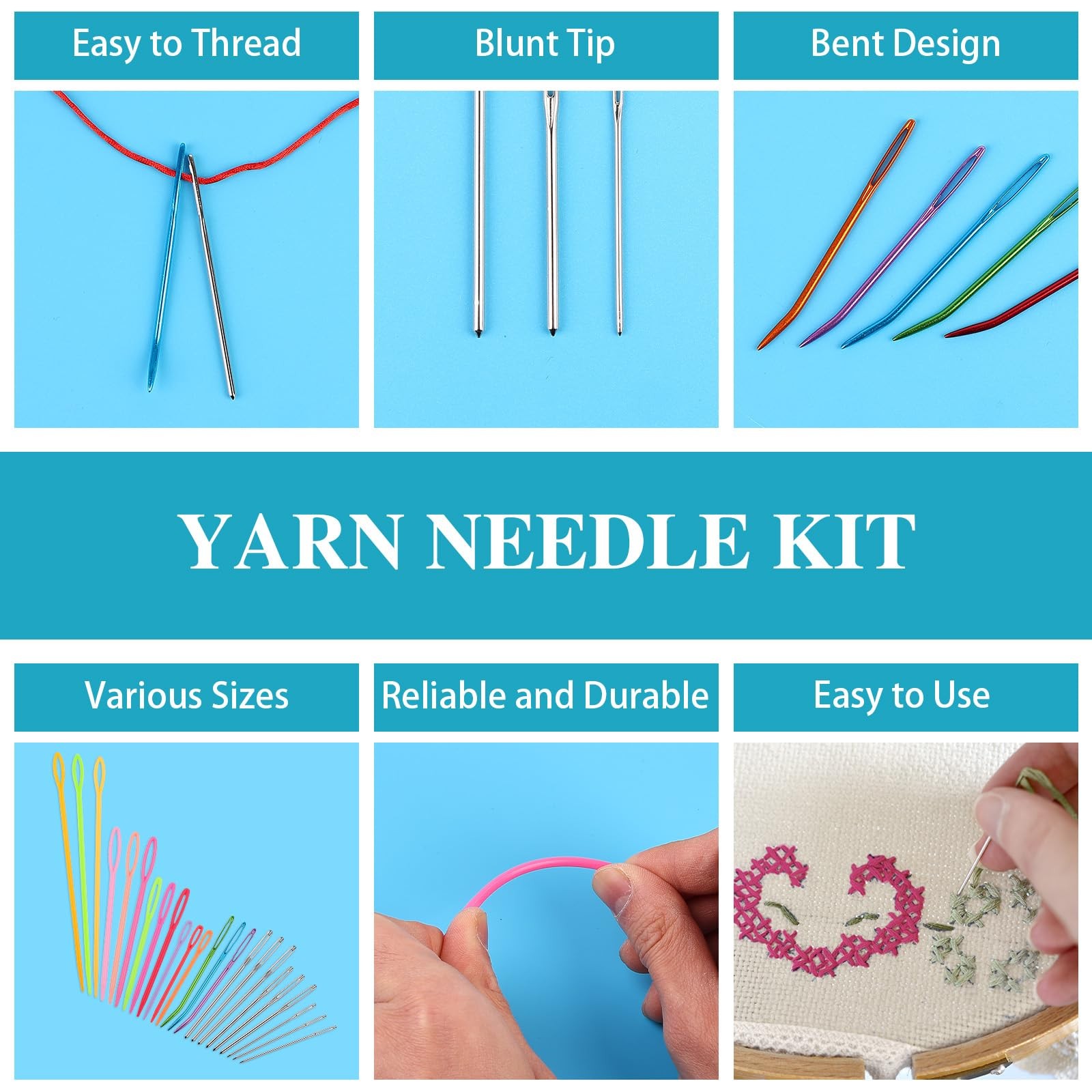 60 PCS Yarn Needle Kit, Including Bent Tapestry 3 Sizes Weaving Mix