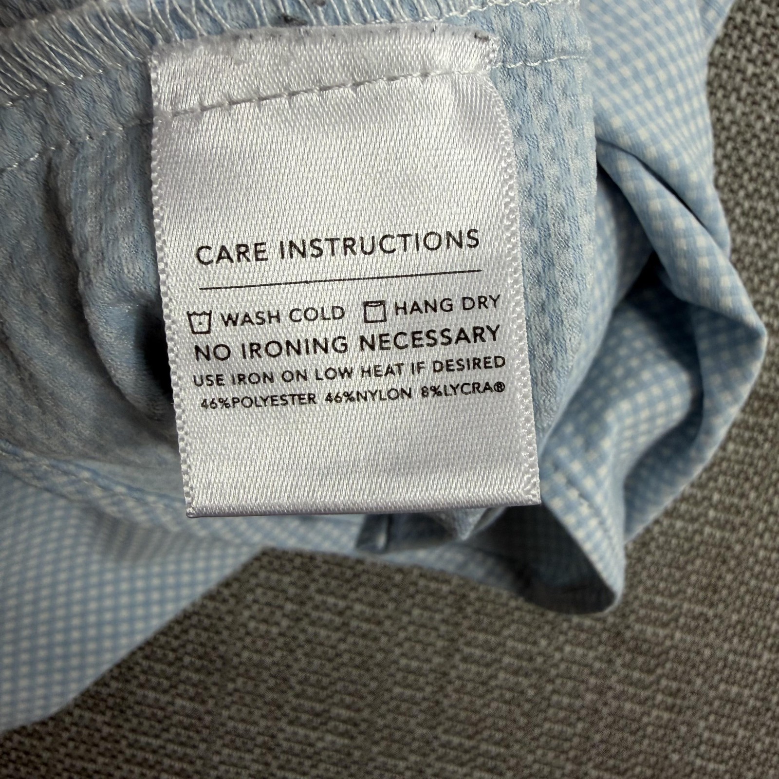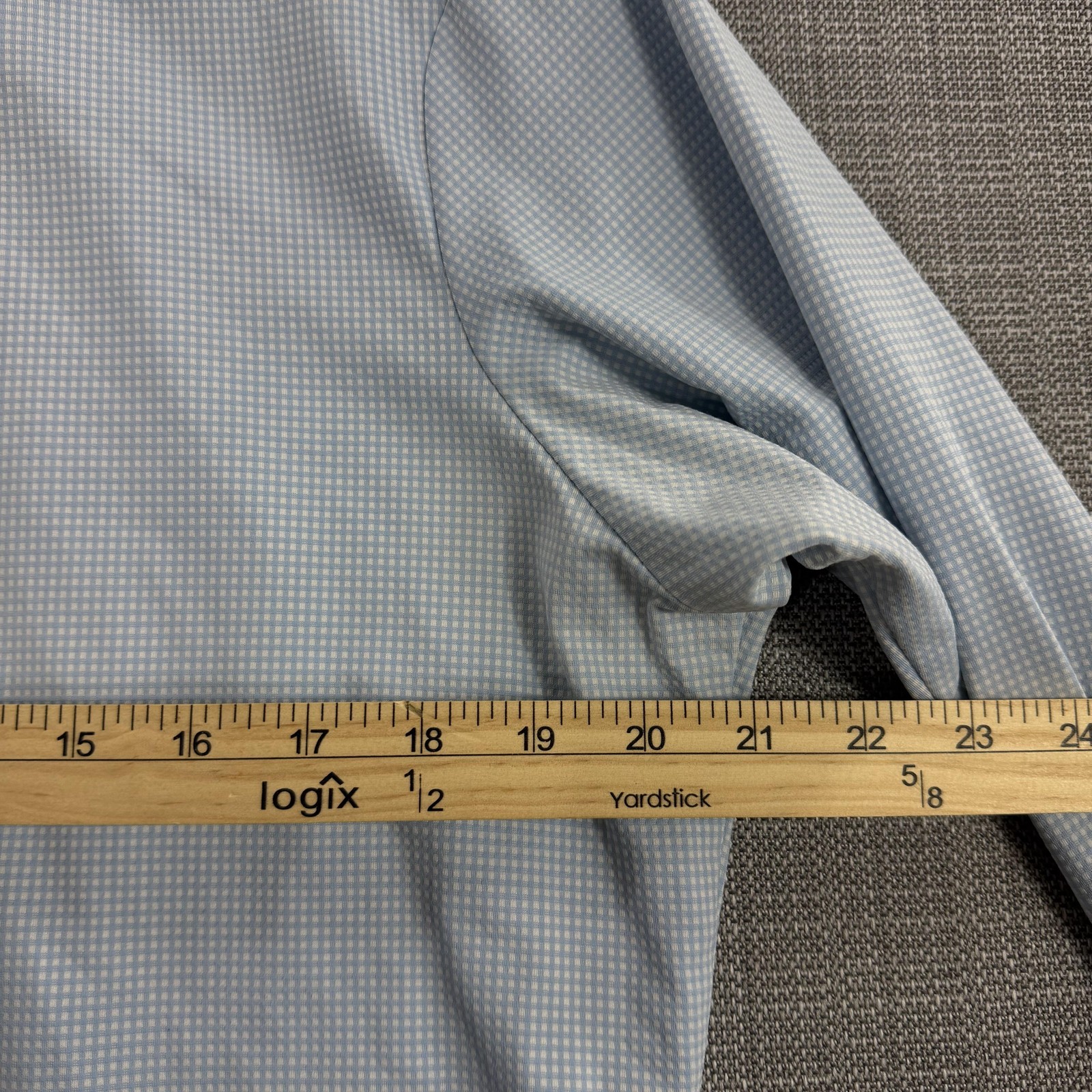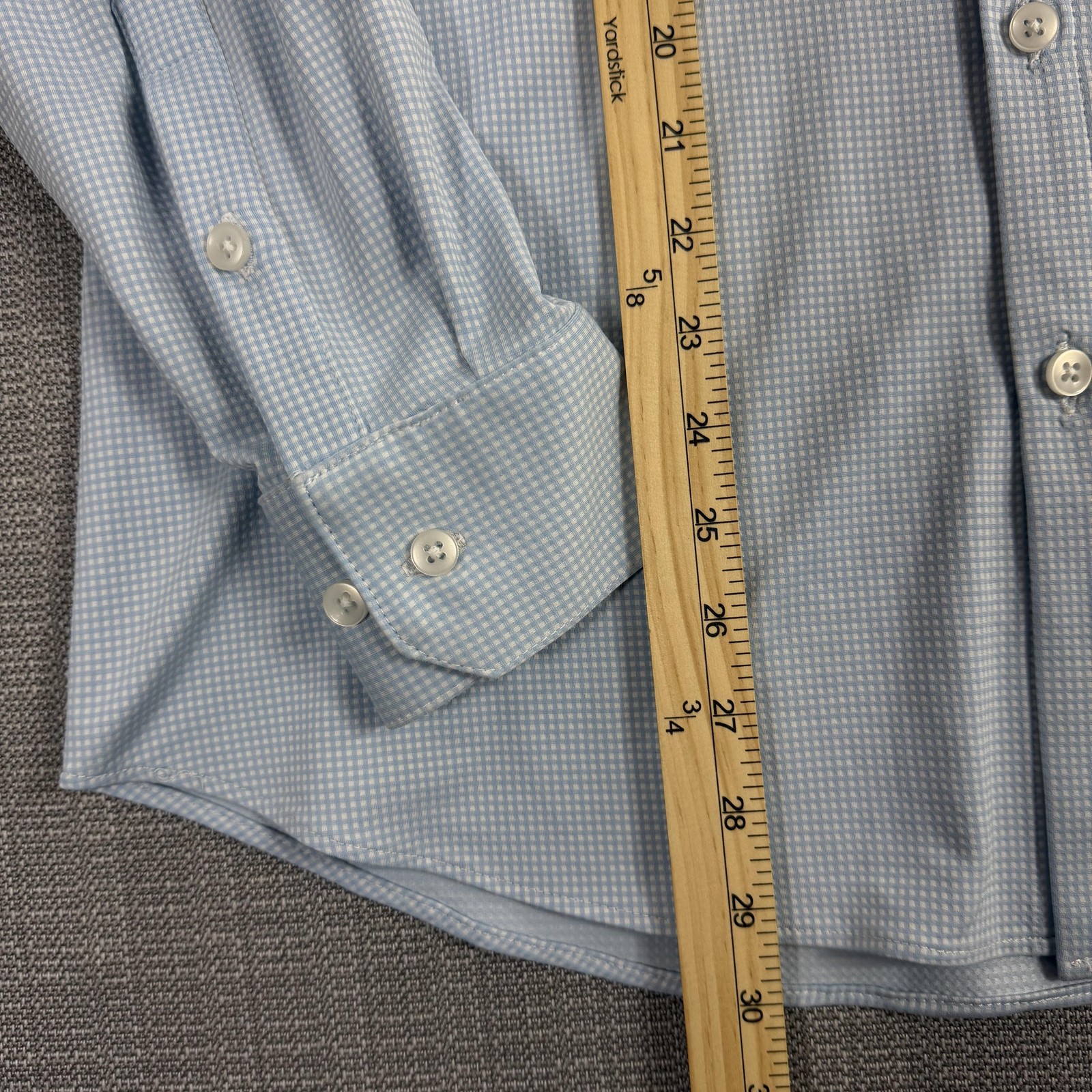 Mizzen Main Shirt Mens Large Trim Fit Blue Gingham Non Iron Stretch Dress