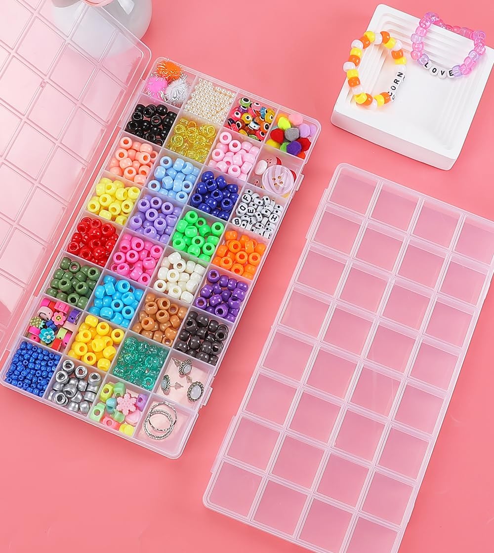 2 Pack 32 Grids Bead Organizer Box Transparent Jewelry Storage 10.2x5.1x0.7 Inch