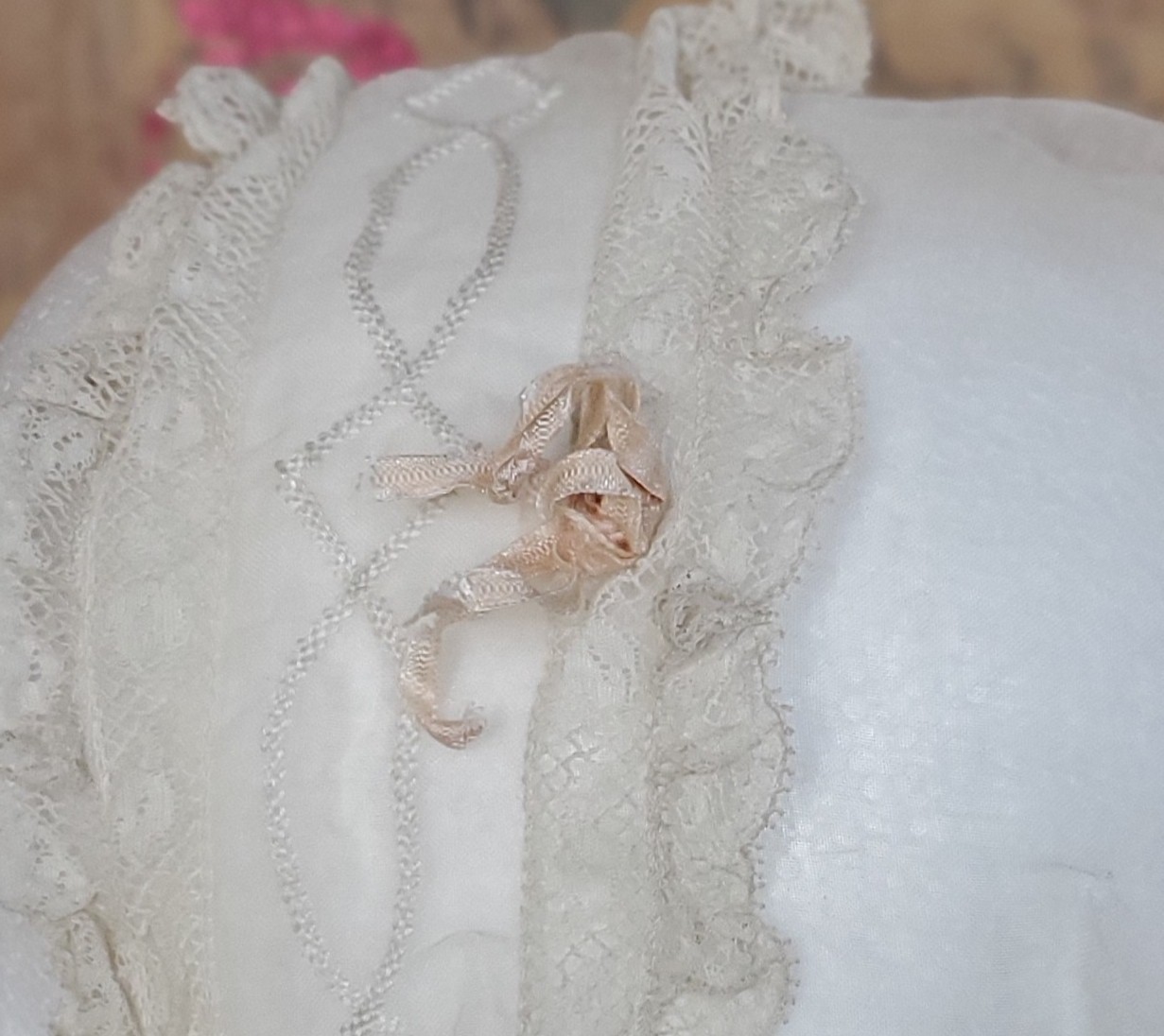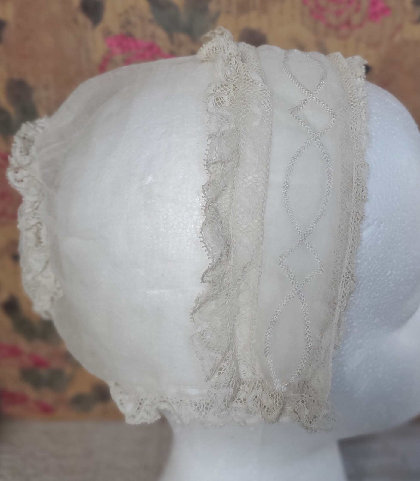 как выглядит Antique Fine Cotton Lace Baby Bonnet фото