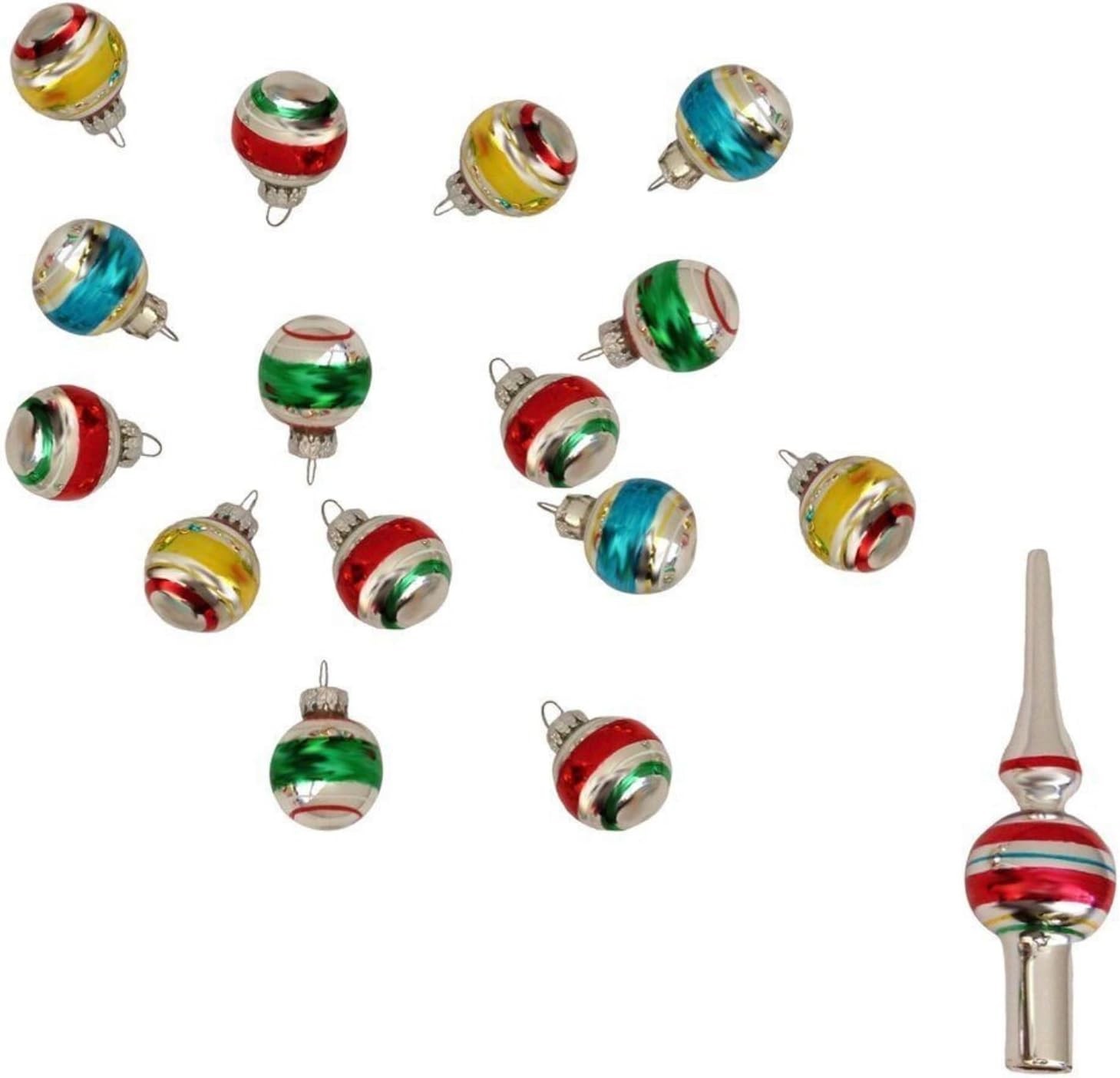 Kurt Adler Vintage Miniature Ornaments Treetop, Set of 16 for Christmas Charm