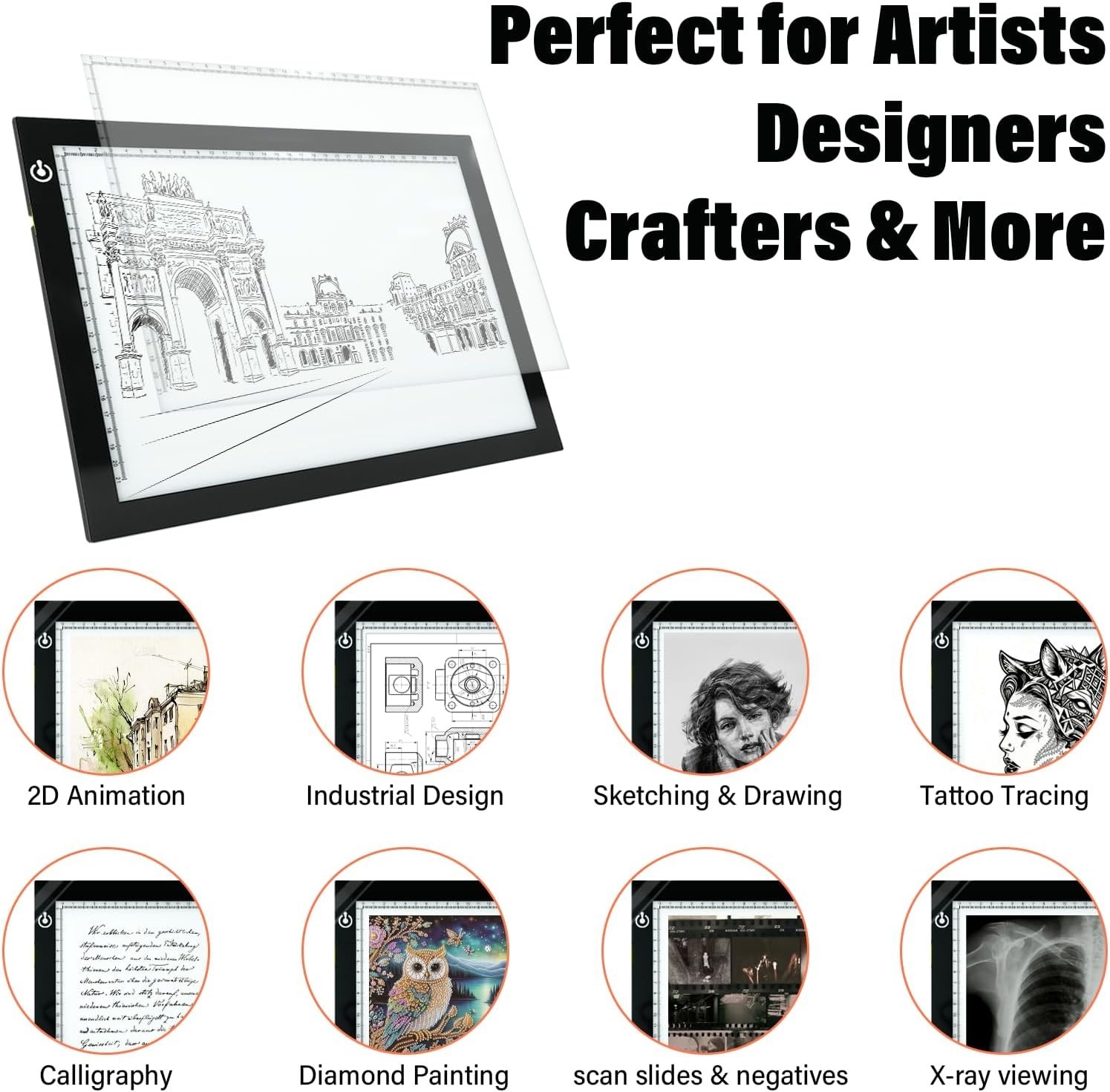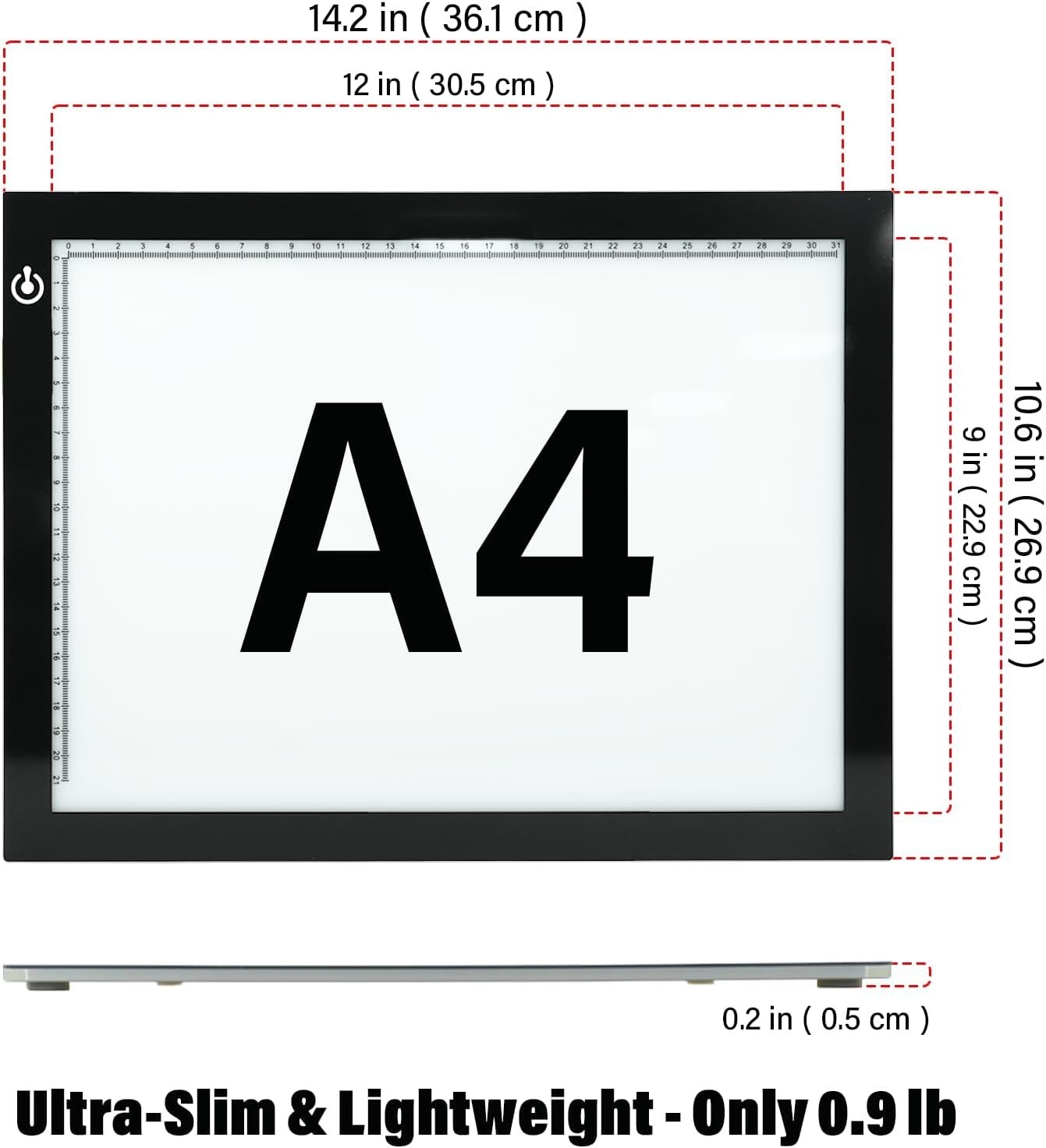 Ultra-Thin A4 Tracing Light Box, USB LED Light Table with Adjustable Brightness