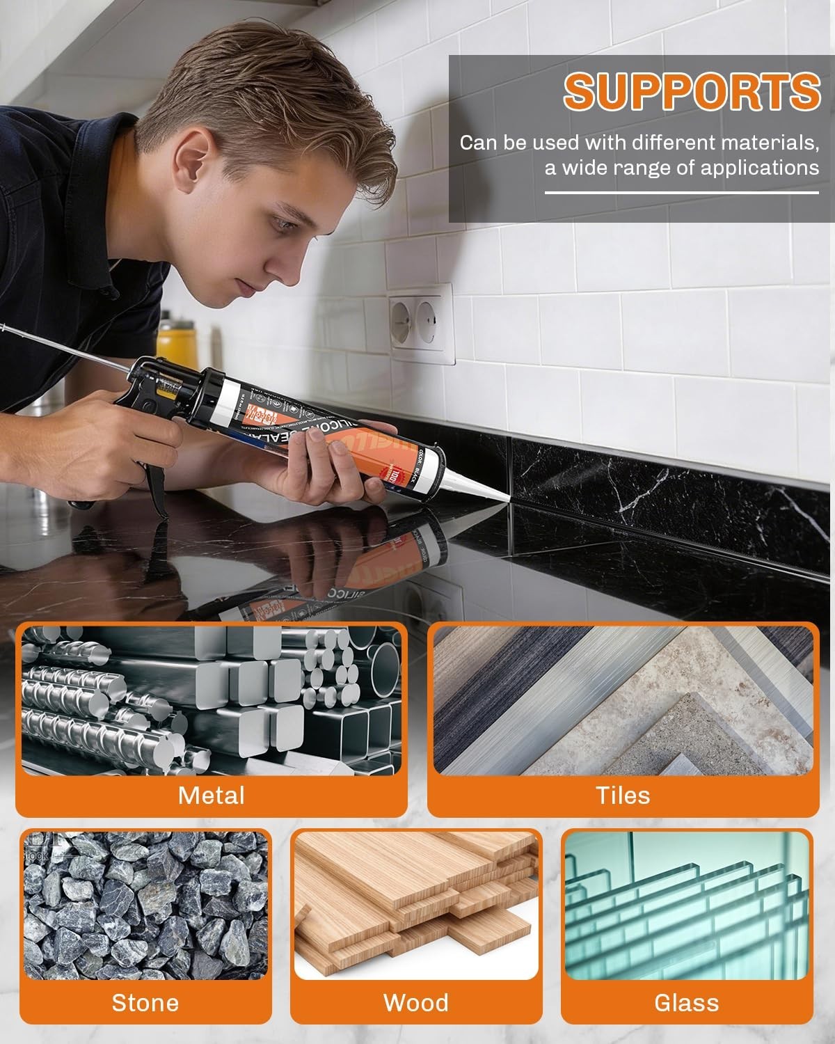 1 Pack Black Silicone Caulk, 100 Waterproof Silicone Sealant Adhesive Caulking