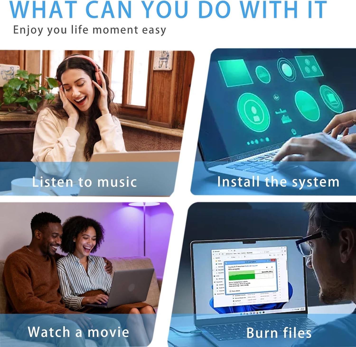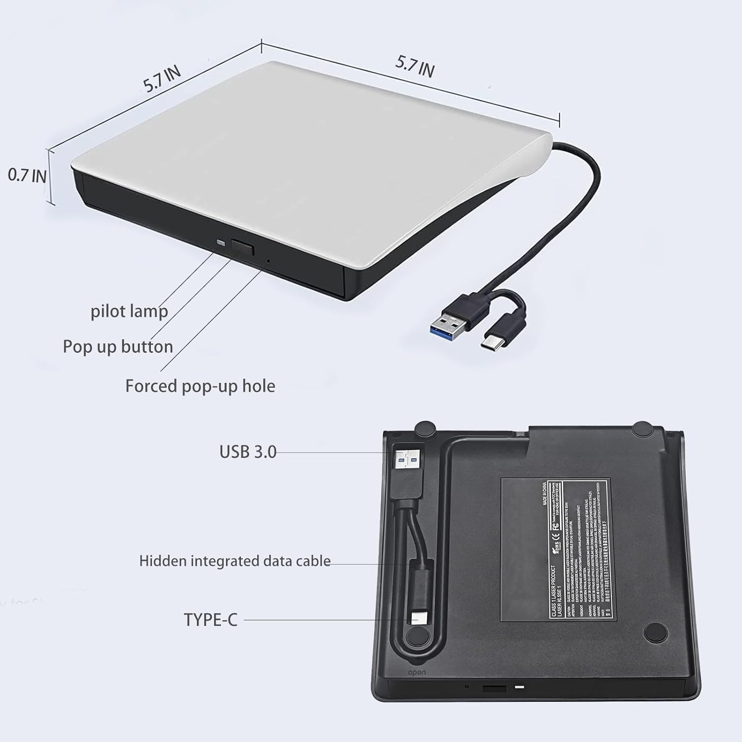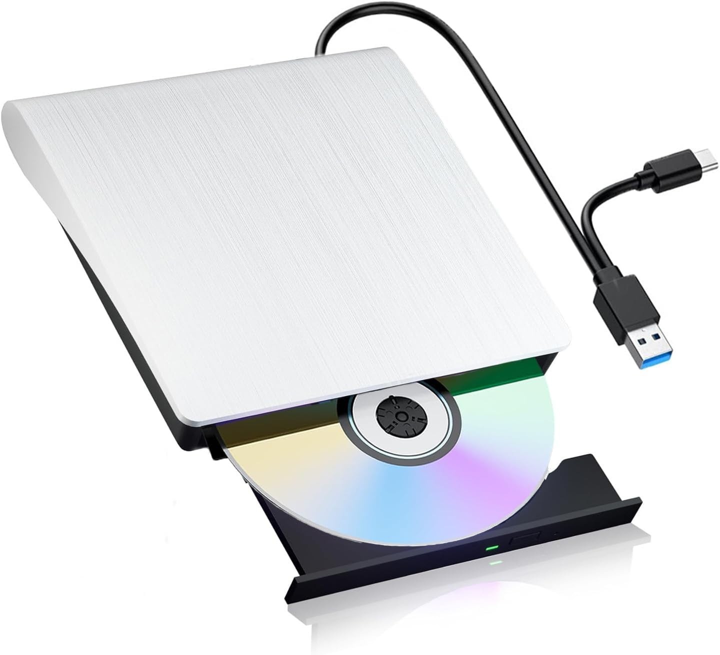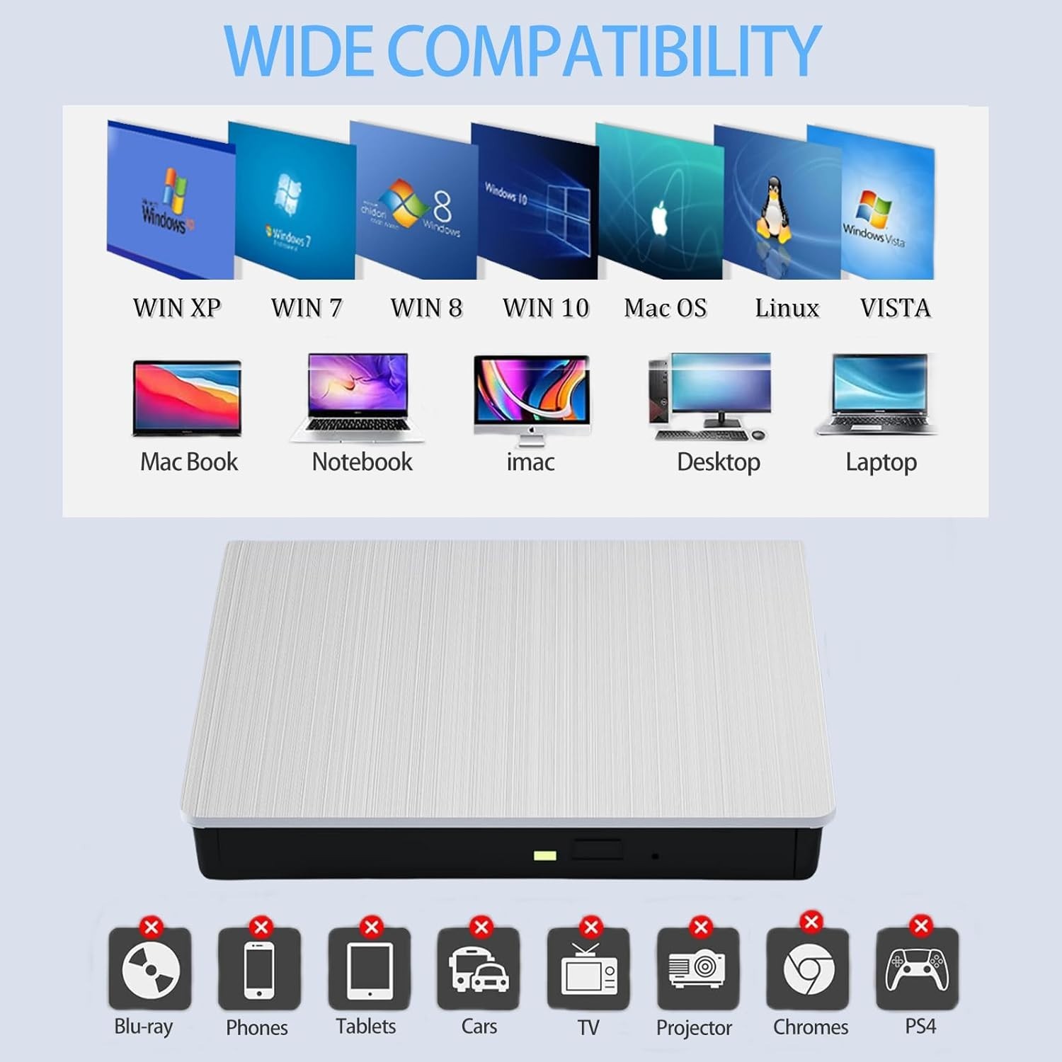 External CD DVD Drive, USB 3.0 Player Burner Writer, for PC Laptop Windows 11 10