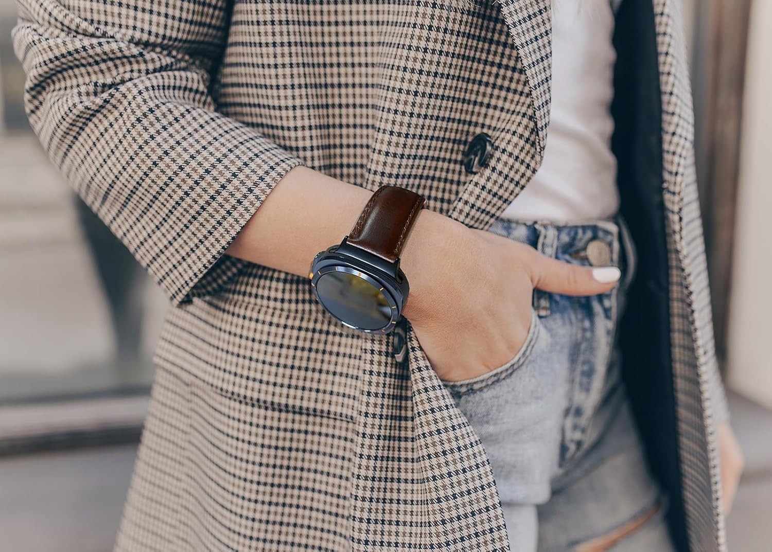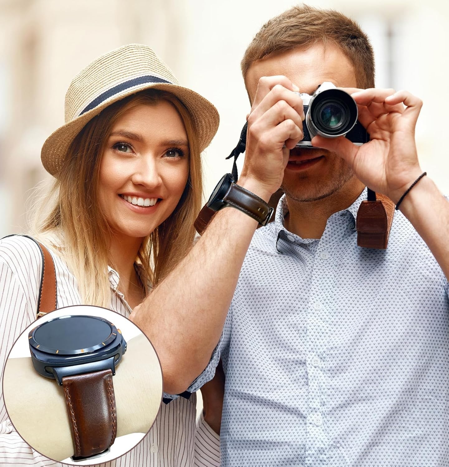 как выглядит Leather Band Compatible with Samsung Galaxy Watch Ultra 47mm 2025/2024 , Genuine фото